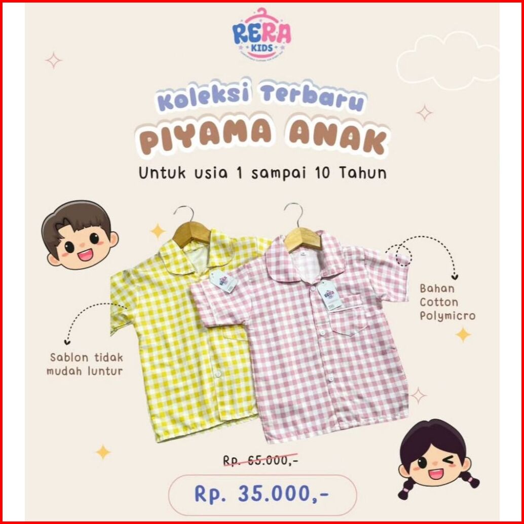 Rera Kids Piyama Anak Motif Kotak Pink Kuning Hitam Moca Dan Navy Usia 1 - 10 Tahun Baju Tidur Anak