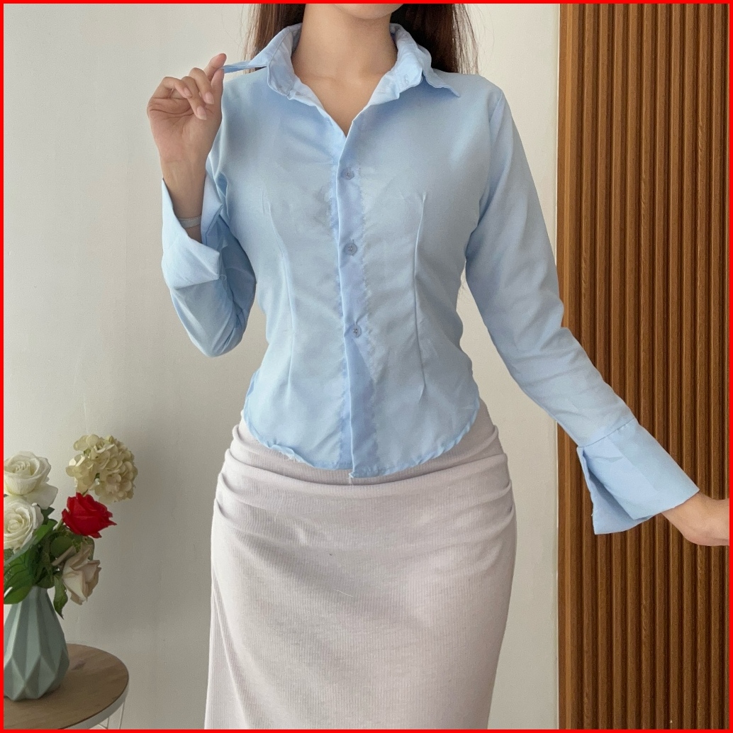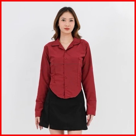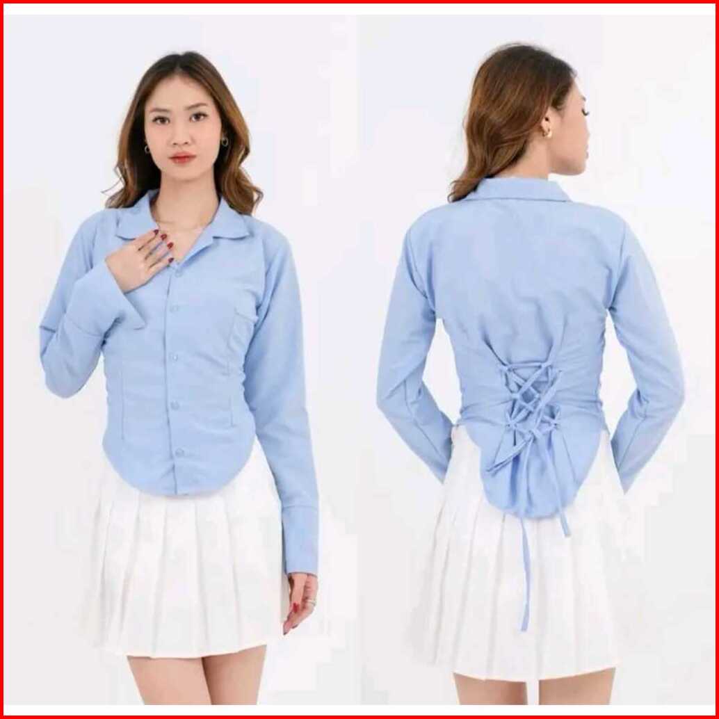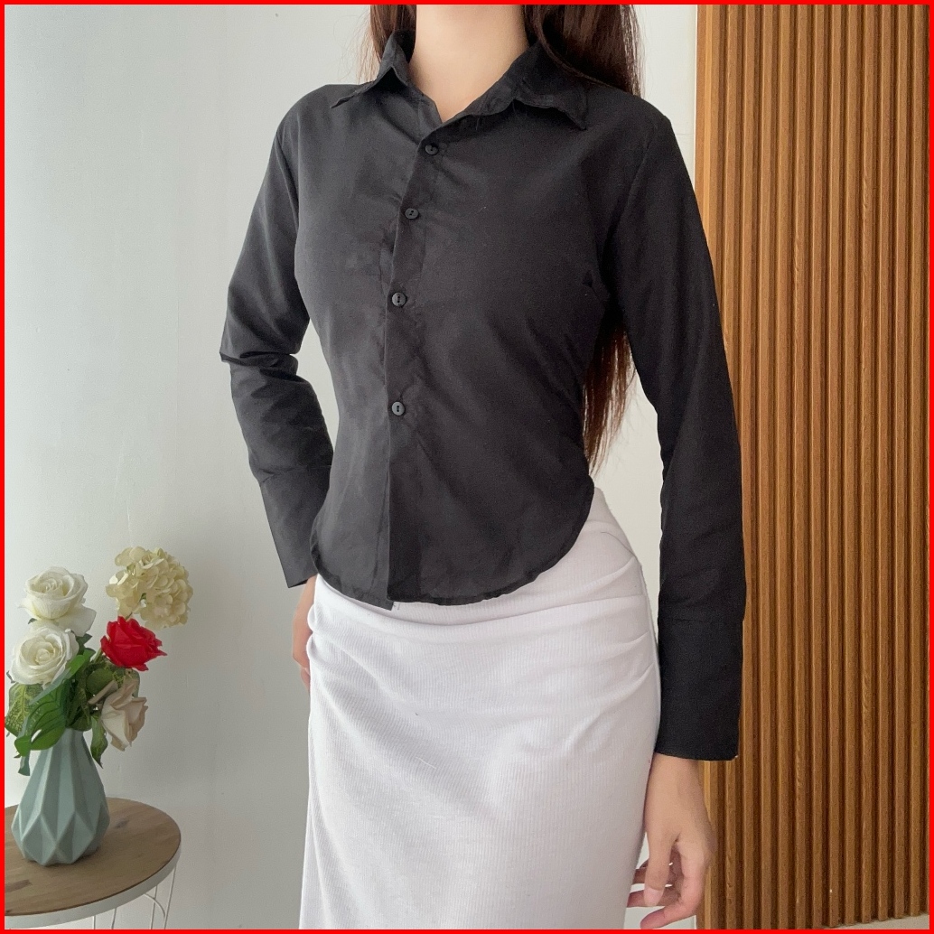 Rx Fashion - Yara Slim Fitt Shirt Atasan Kemeja Wanita Polos - Pn