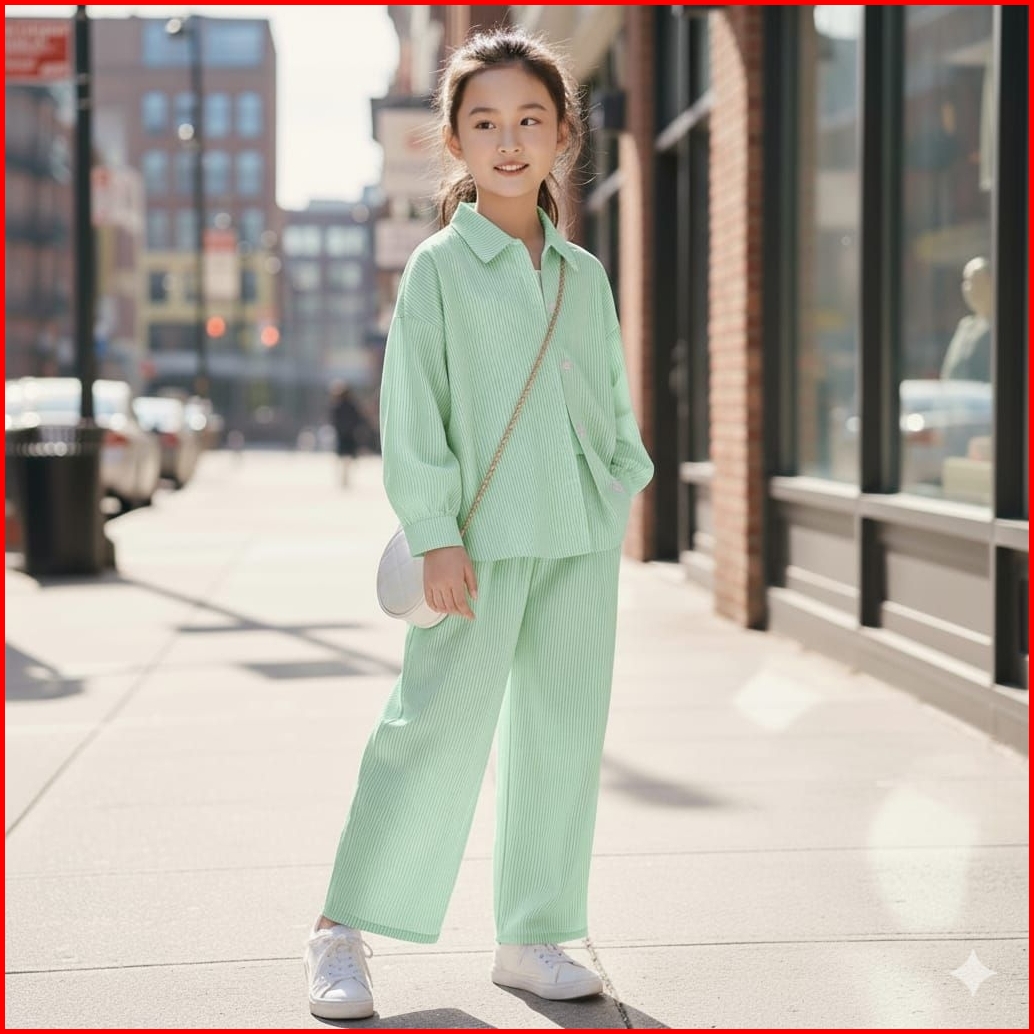 Setelan Anak Perempuan 1-12 Tahun Motif Salur Baju One Set Anak Cewek Bahan Cotton Premium Kemeja Model Korean Style Ter