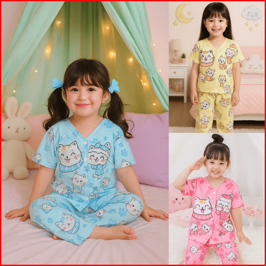 Sibulat 43 Piyama Anak Perempuan Cat Series Piyama Premium Usia 1-6 Tahun