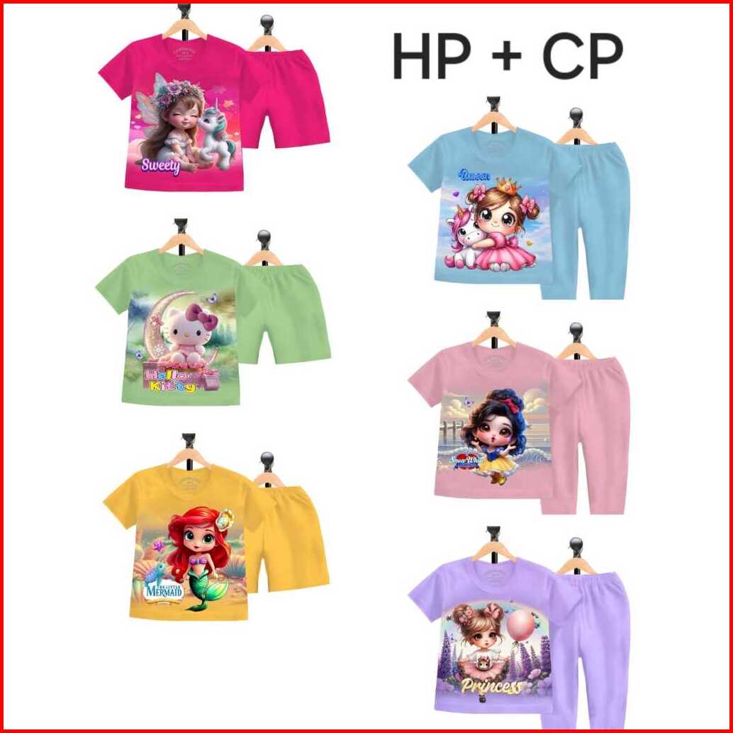 Paket 3pcs 6pcs Baju Setelan Anak Perempuan Motif Warna Random Usia 1-8 Tahun Sablon Printing