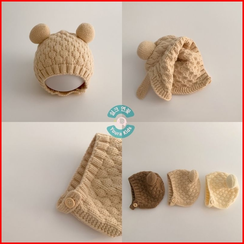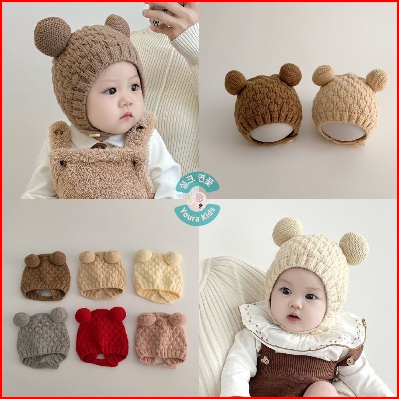 6bln - 3thn Topi Bonnet Rajut Anak Bayi Batita-bear Ear V2- -new Korean Model