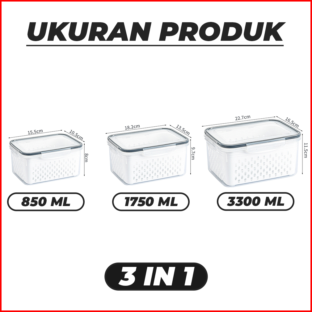 Keranjang Buah Sayur Box Penyimpanan Multifungsi Makanan Snack Bahan Dapur Kulkas Box Container Bxh1