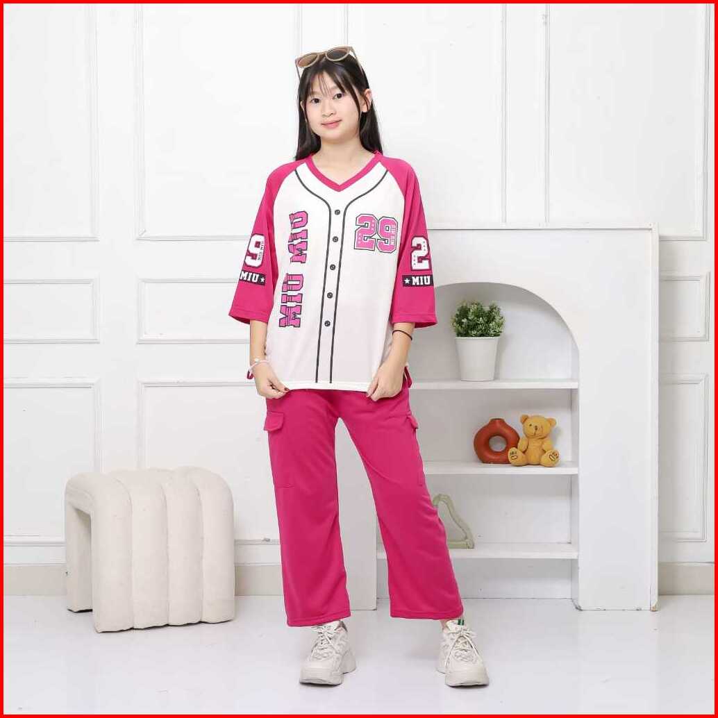Baju Setelan Anak Perempuan Motif Baseball Bahan Vista Terry Setelan Anak Cewek Usia 8-12 Tahun