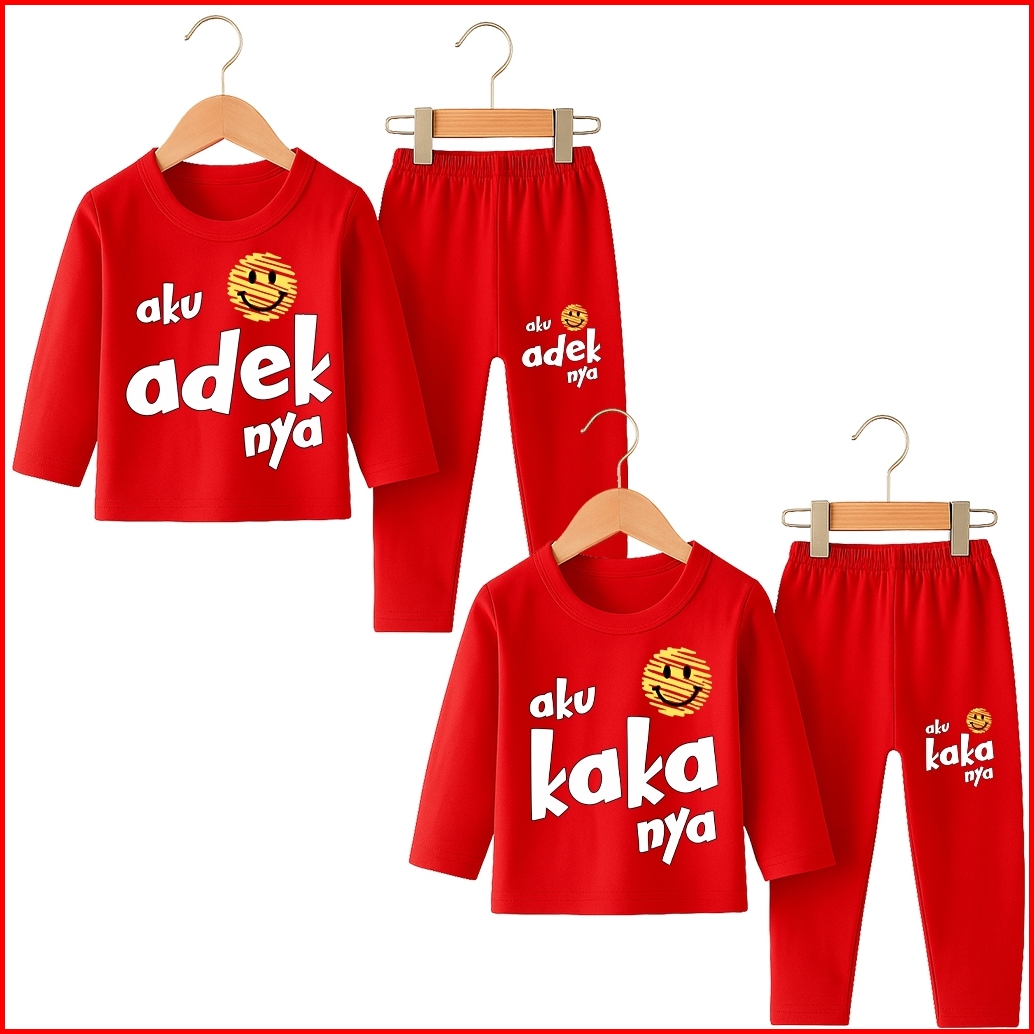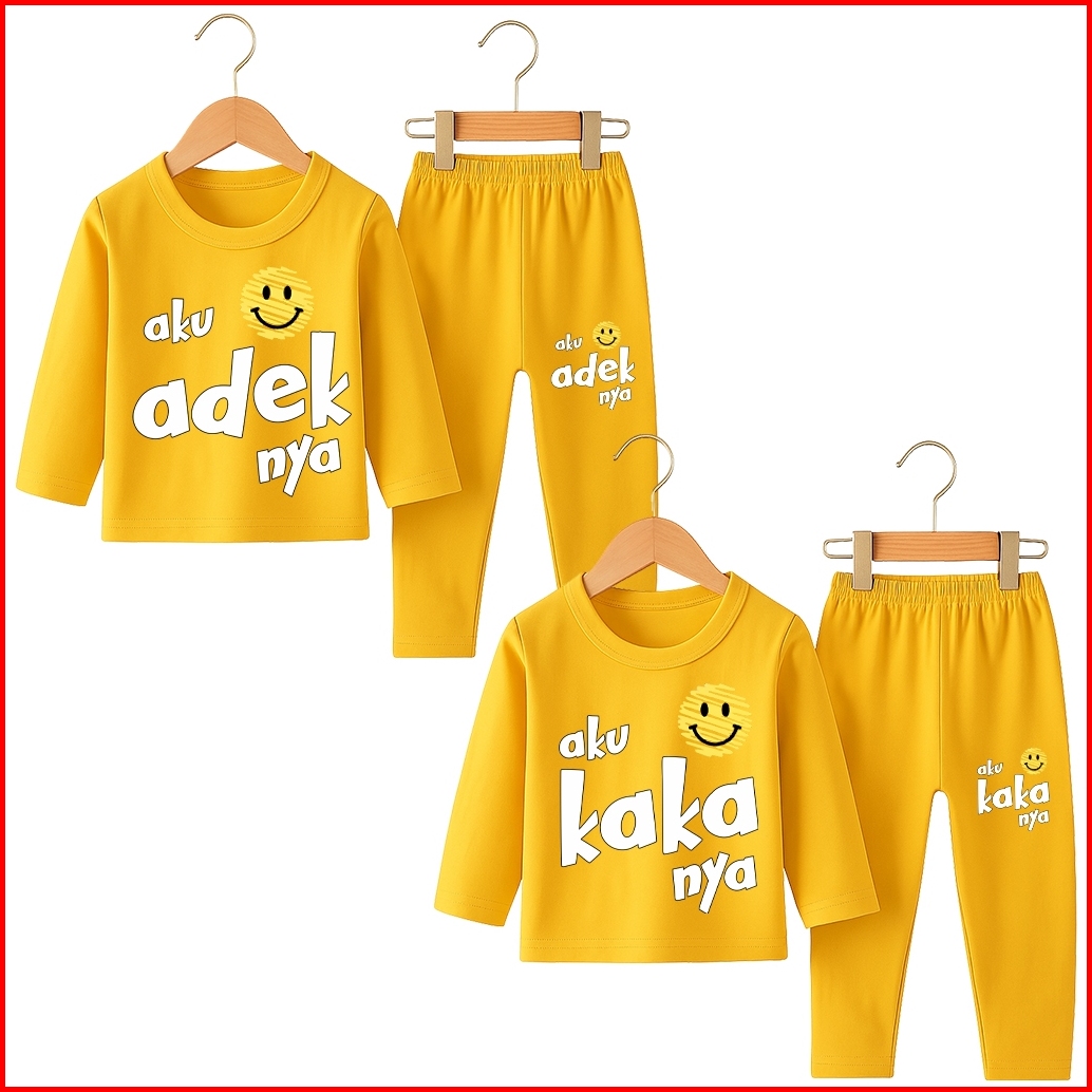 Setelan Couple Aku Adeknya Aku Kakaknya Piyama Anak Perempuan Kembar Lengan Panjang Celana Panjang