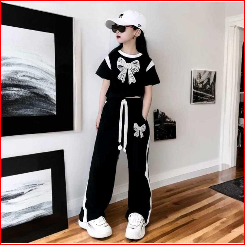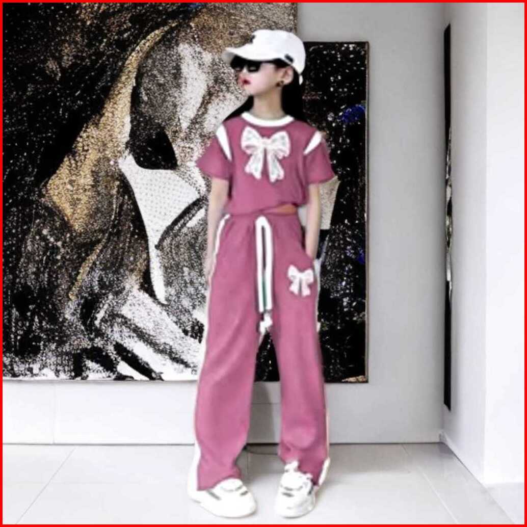 Setelan Baju Anak Perempuan Set Crope Pita Dan Celana Kulot Panjang Oneset Fashion Baju Dan Celana