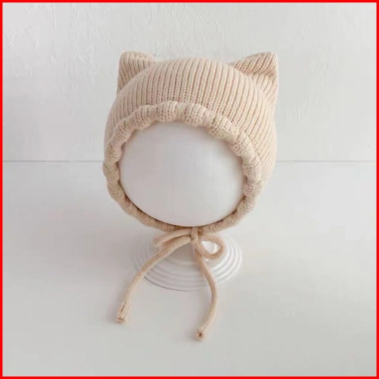 Topi Kupluk Tali Anak Dan Bayi Motif Renda Telinga Kucing