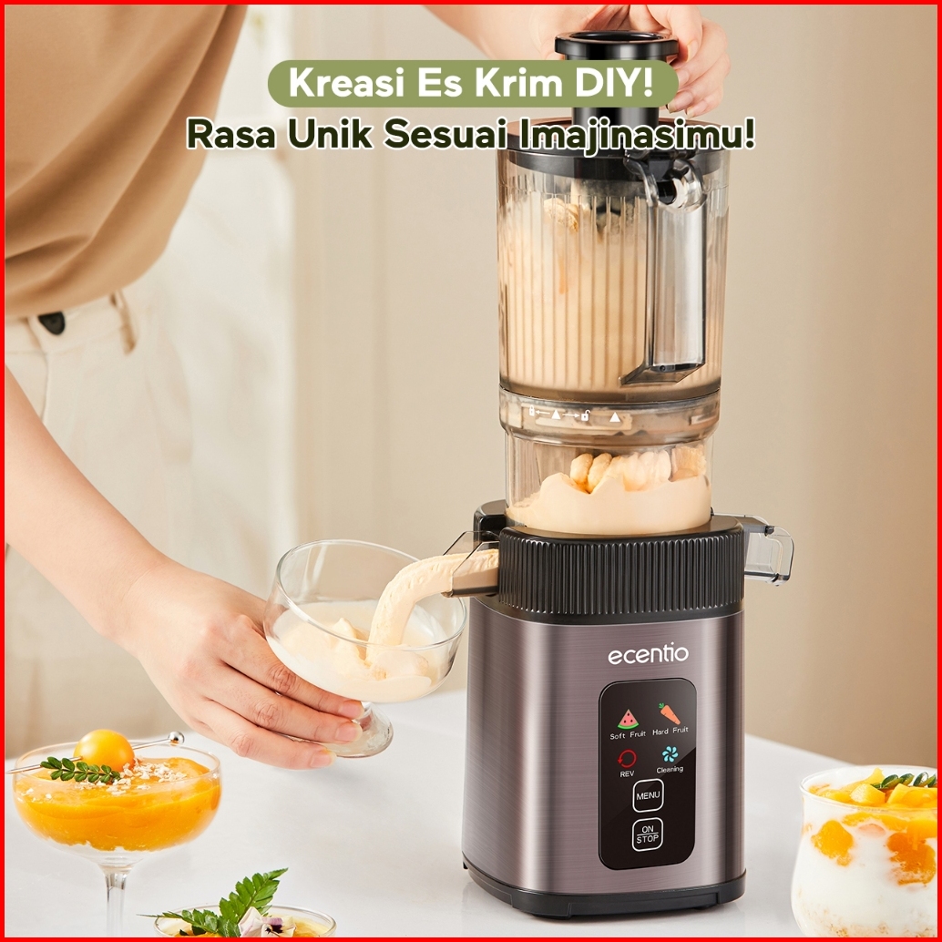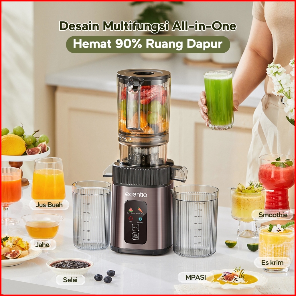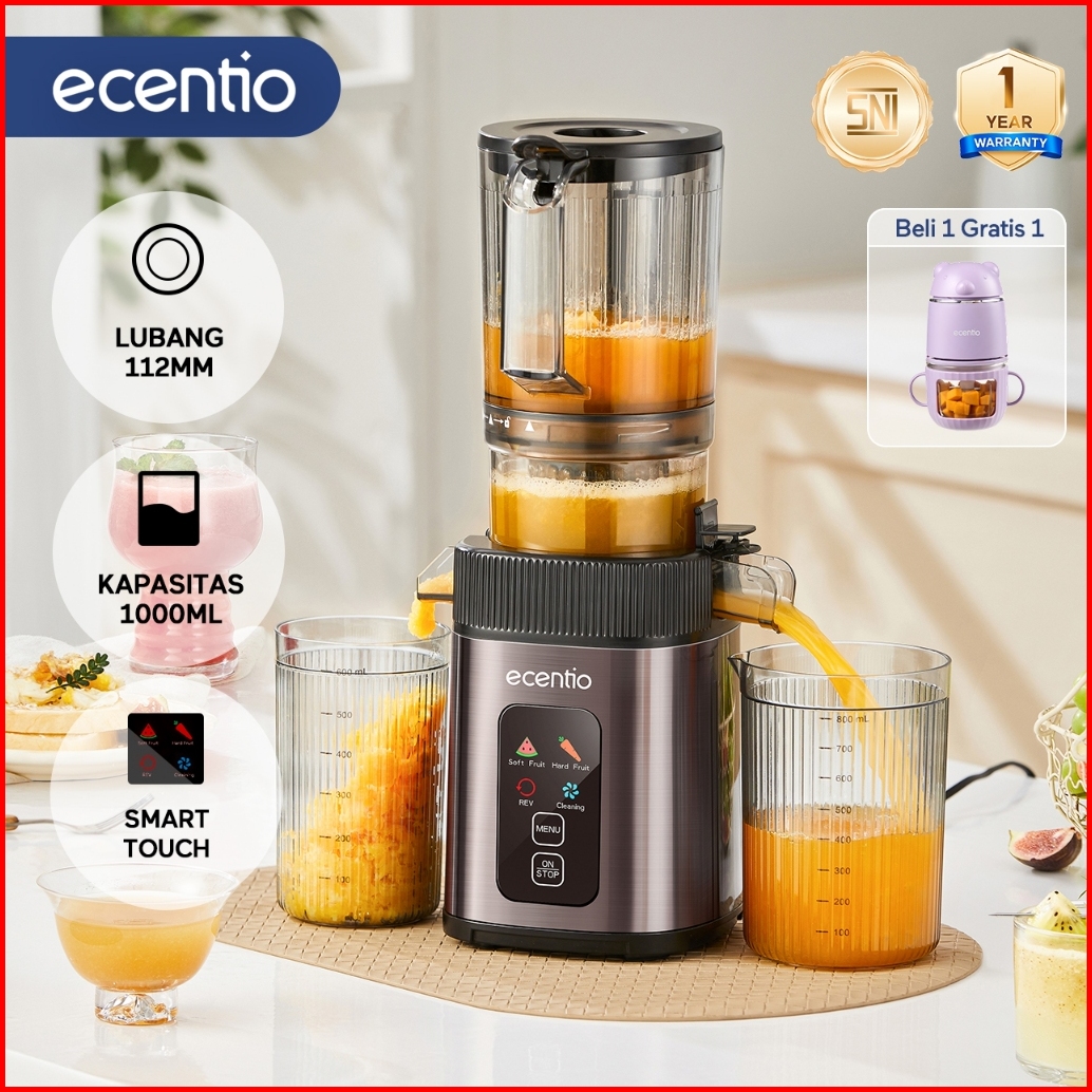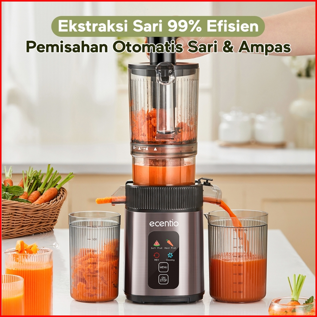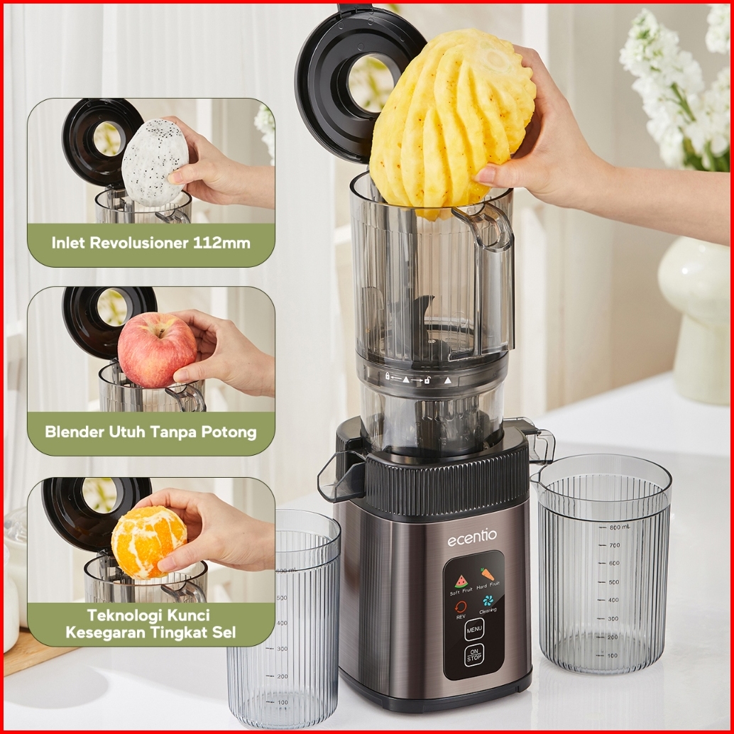 Ecentio Smart Slow Juicer 1000ml Besar Cerdas Panel Sentuh Lubang 112mm 99 Ekstraksi Juicer Buah Tanpa Ampas Multifungsi
