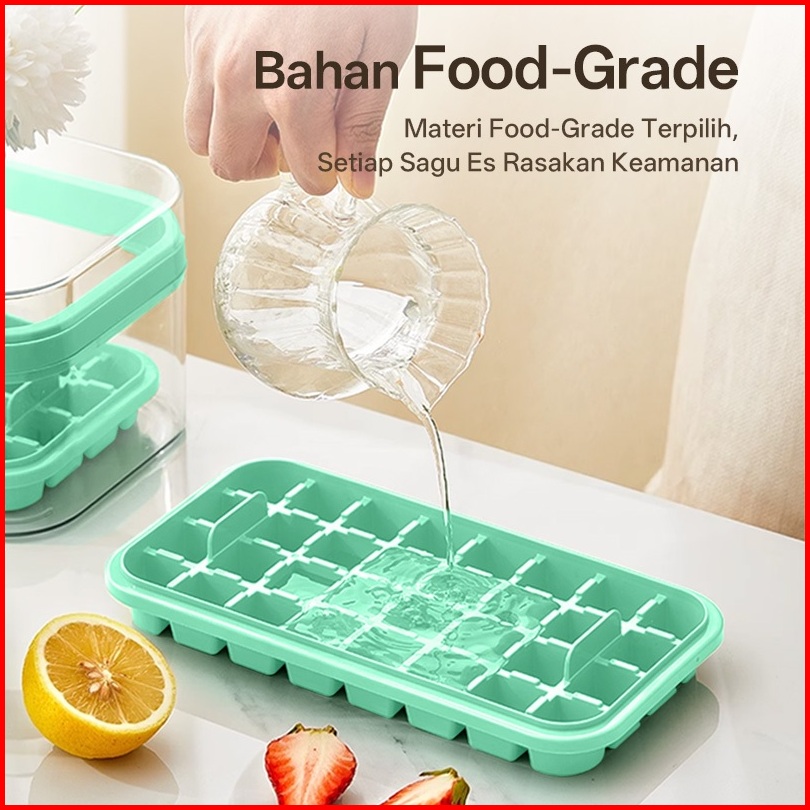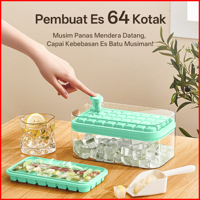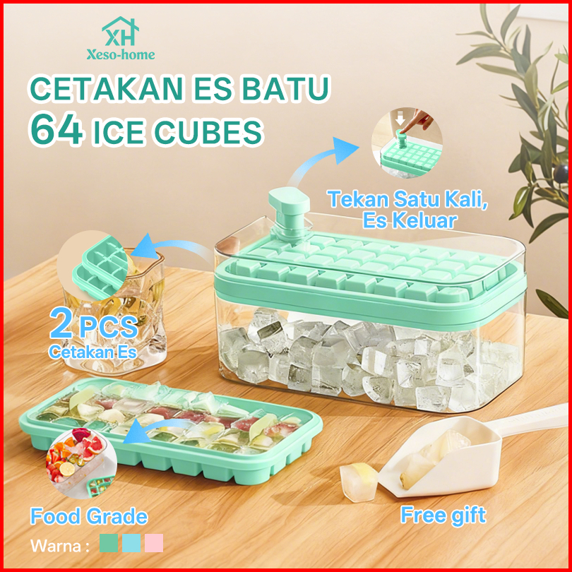 Xeso Home Cetakan Es Batu 64 Grid Wadah Transparan Ice Cube Maker Dengan Press Handle Sekali Tekan 32 Grid 2 Tray