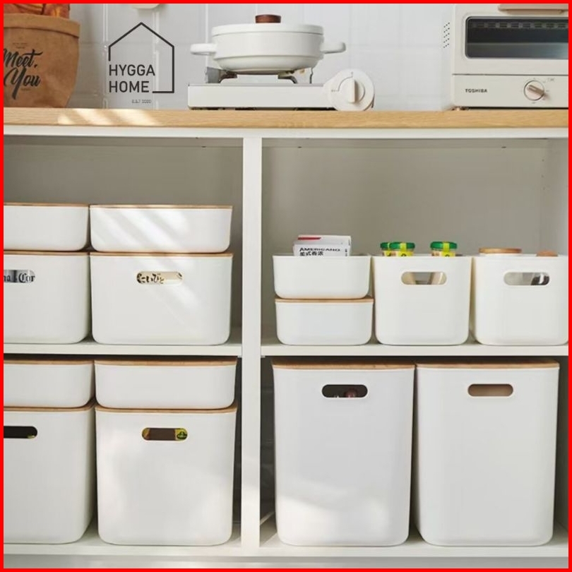 Hygga Home Aika Storage Handle With Bamboo Cover Tempat Penyimpanan Putih Dengan Tutup Bambu