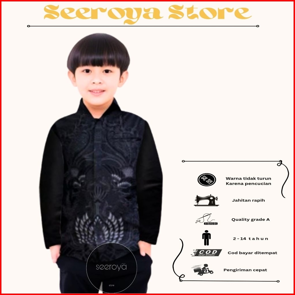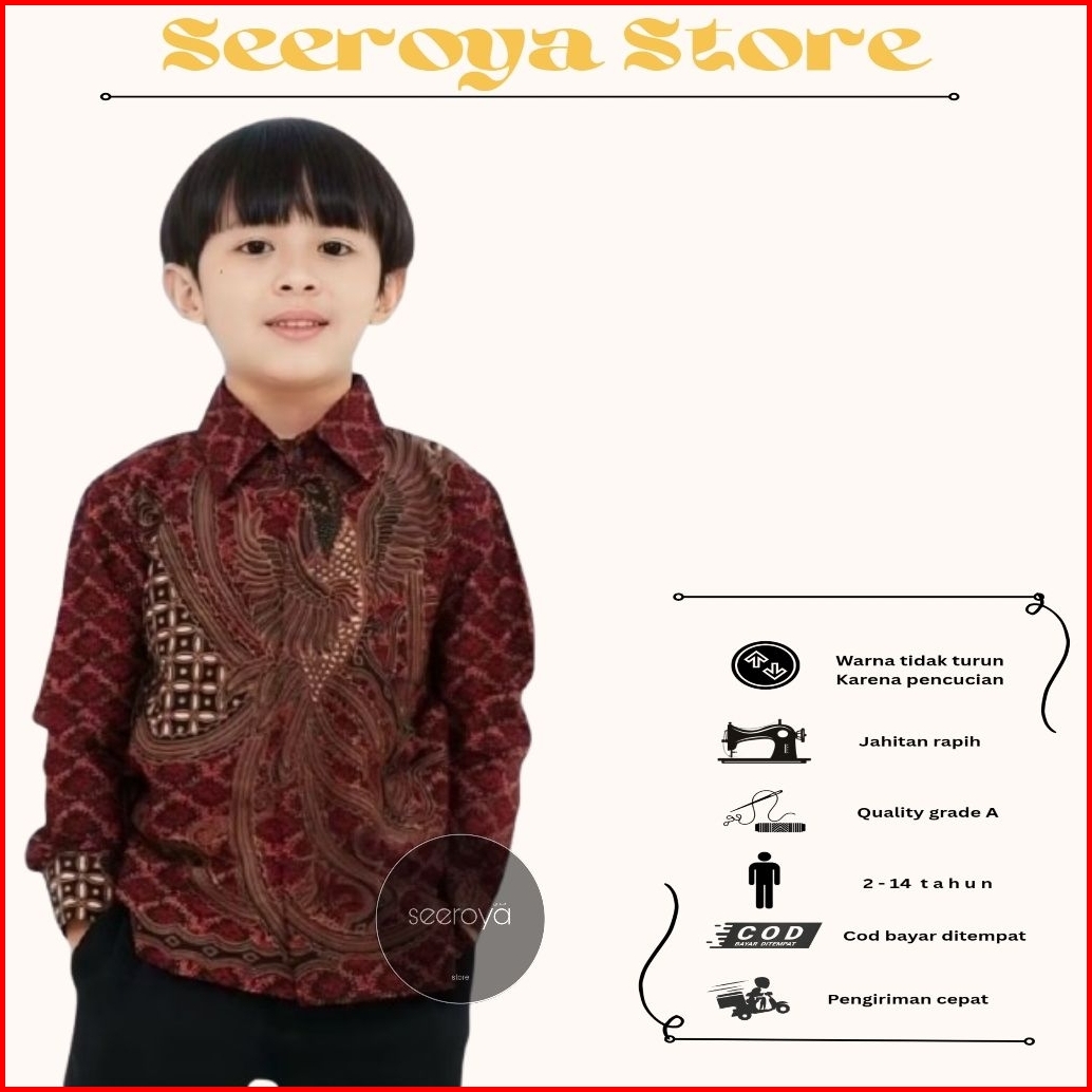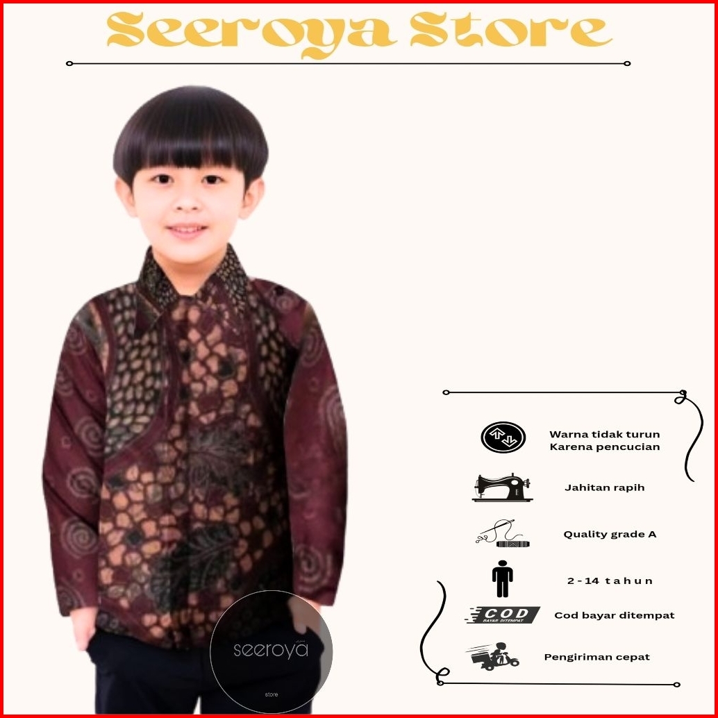 Baju Batik Anak Laki Laki Lengan Panjang Usia 2-14 Tahun -kemeja Batik Anak Cowok Size M L Xl Xxl