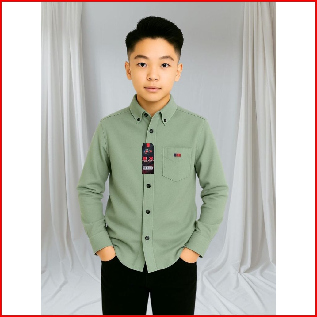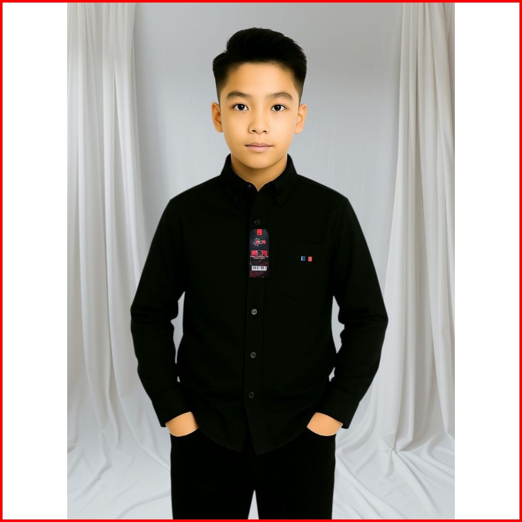 Kemeja Anak Laki-laki Polos Lengan Panjang Usia 2-14 Tahun