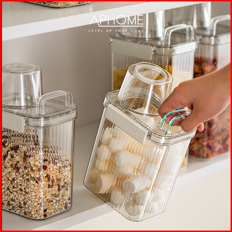 Aphome Kontainer Botol Toples Tuang Serbaguna Tempat Penyimpanan Sereal Beras Transparan Widi
