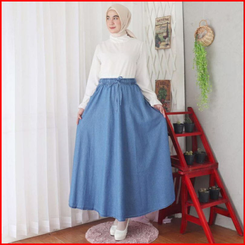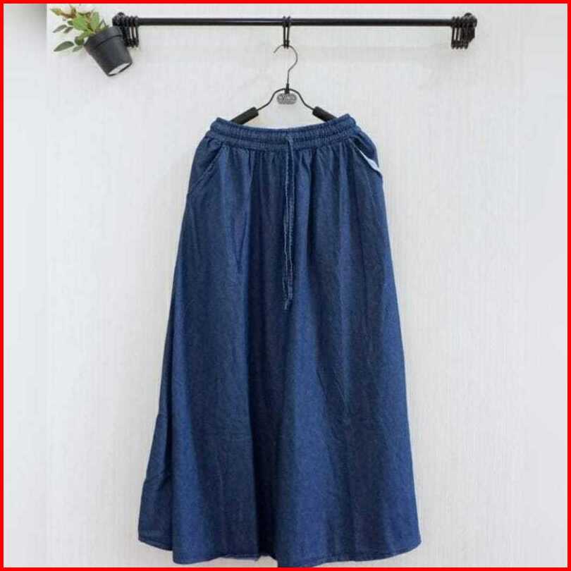 Rok Jeans Panjang Polos Jumbo Tali Aktif Rok Panjang Jeans Jumbo Polosan Tali Aktif
