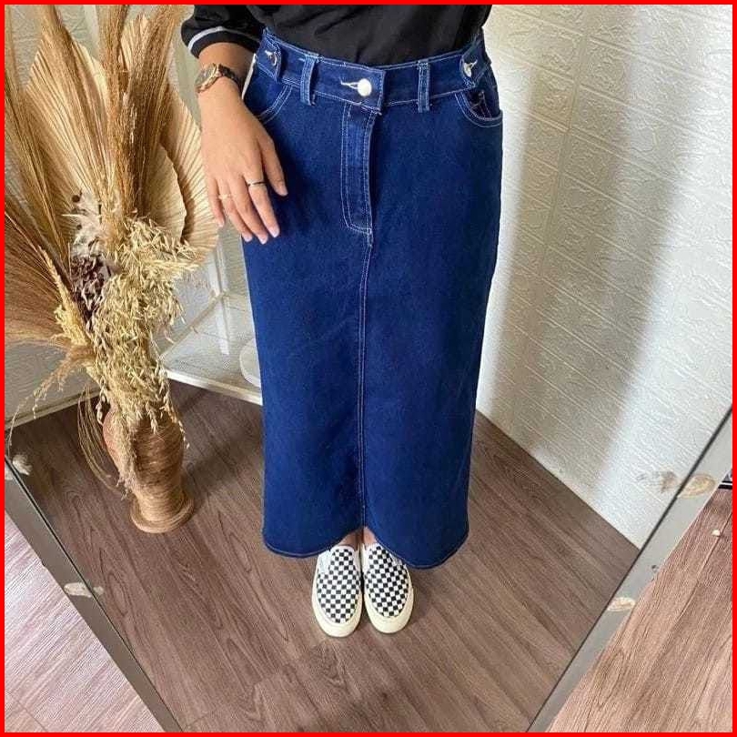 Rok Jeans Skrit Rebbecaa Standar Jumbo Korea Style Denim Wanita Kekinian