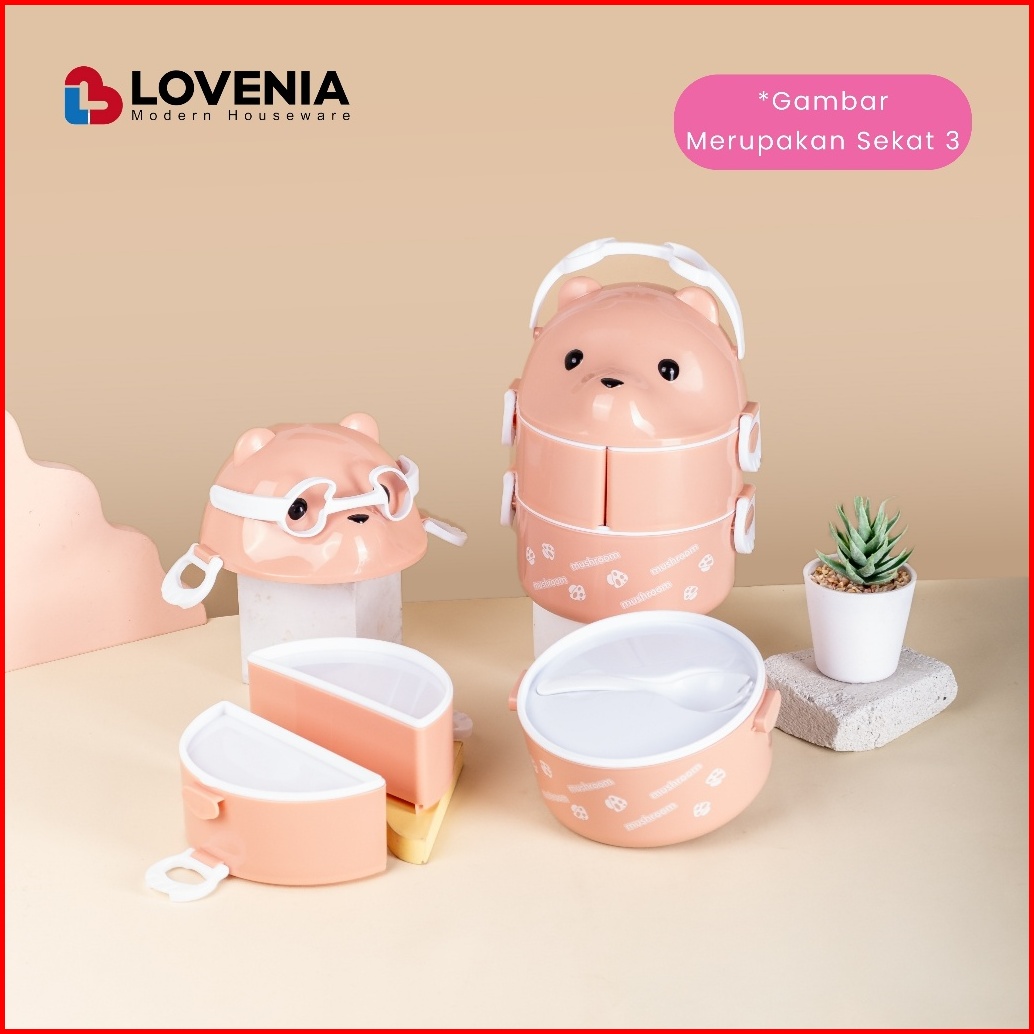 Lovenia Rantang Beruang Sekat Susun Bonus Sendok Makan Plastik Lunch Box Bekal Anak Sekat 3