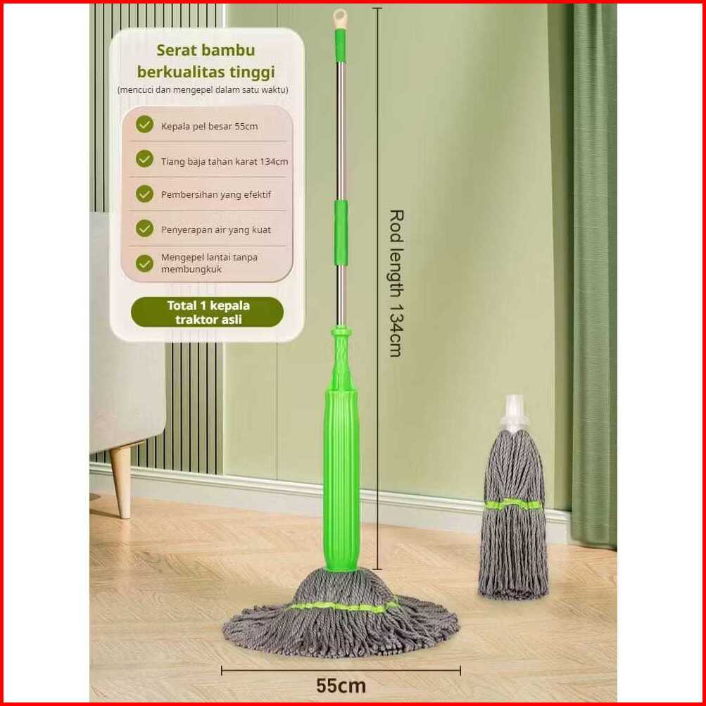 Twist Mop Alat Dehidrasi 1 Detik Pel Otomatis Pel Lantai Efisien Putar Twist Mop Mikrofiber 360