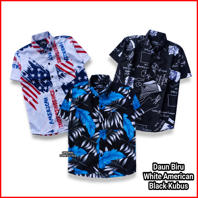 Paket Hemat 3pcs Kemeja Anak Laki-laki Usia 2-12 Tahun Baju Kemeja Anak Cowok Motif Pantai Hem Anak