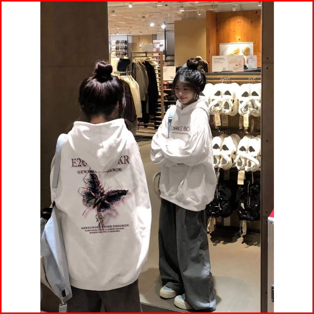 Po Floret Sweater Hoodie Oversize Wanita Butterfly Print Hoodie Wanita Oversize Korean Style Tebal Ori