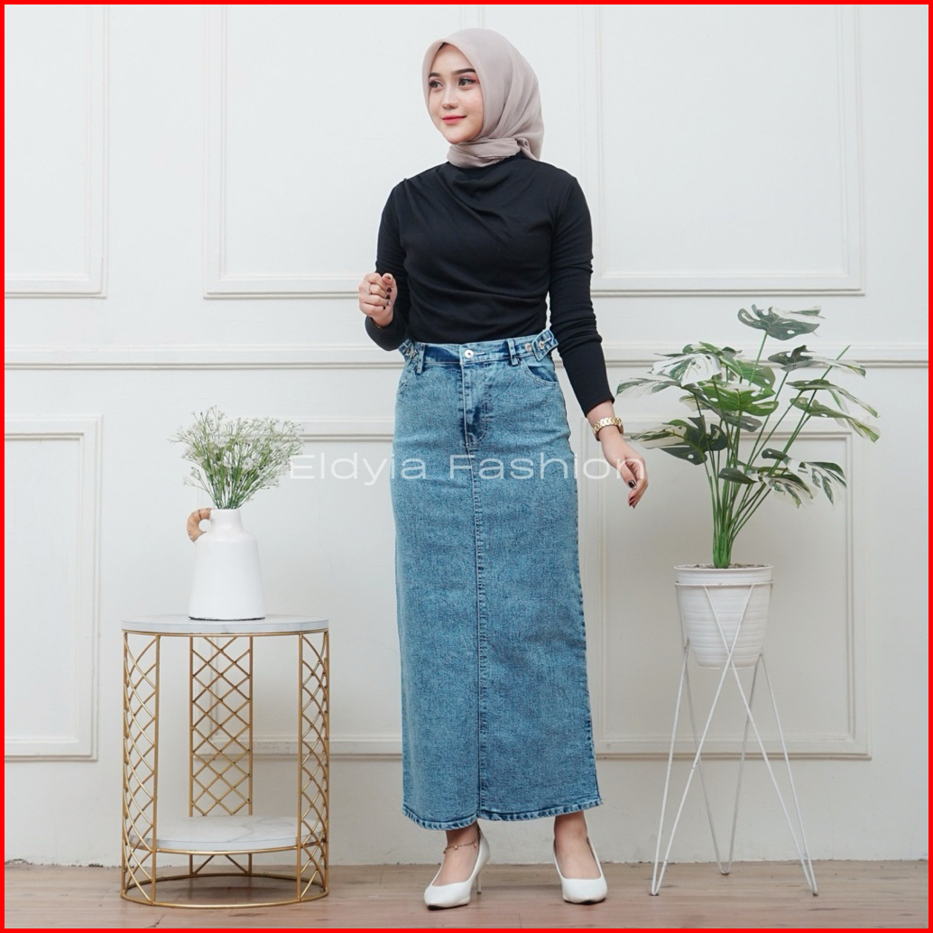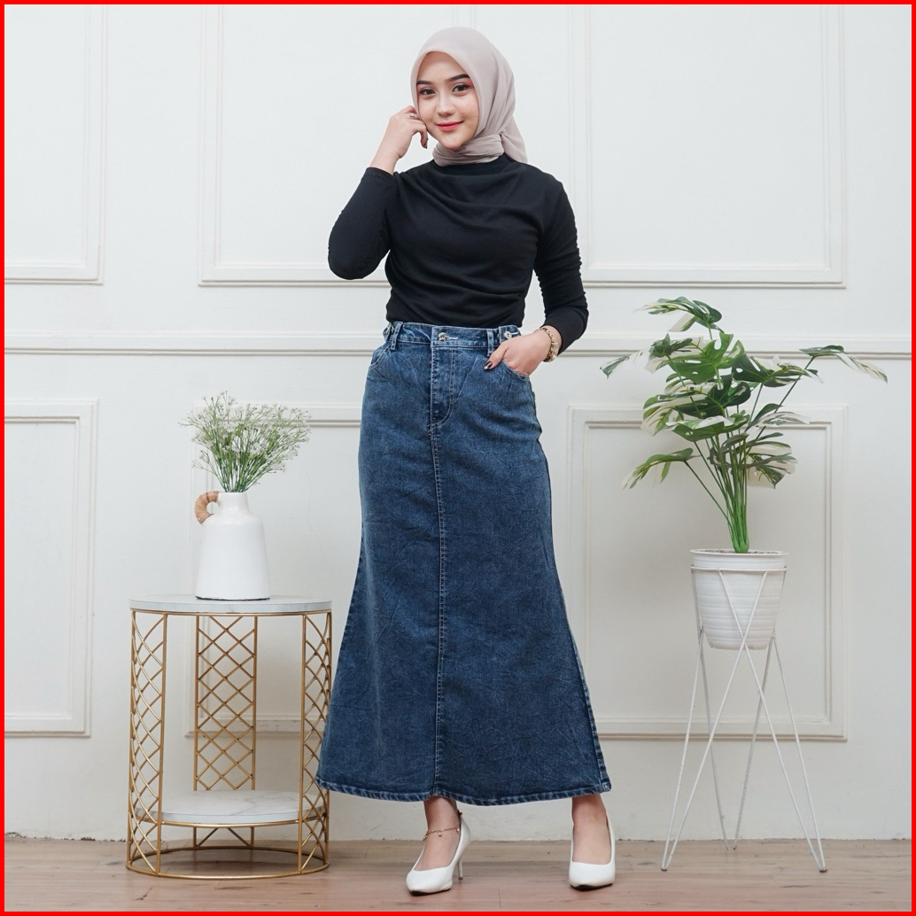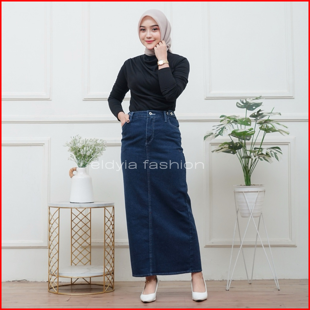 Highwaist Rok Jeans Theana Bahan Denim Tebal