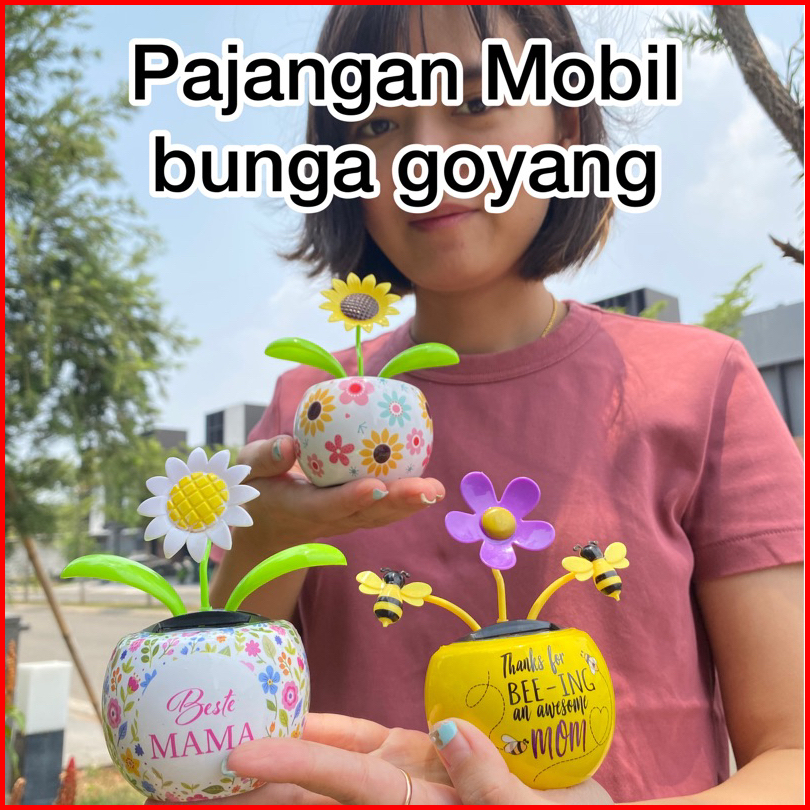 Boneka Goyang Mobil Tenaga Surya Hiasan Dashboard Bunga Matahari Lucu
