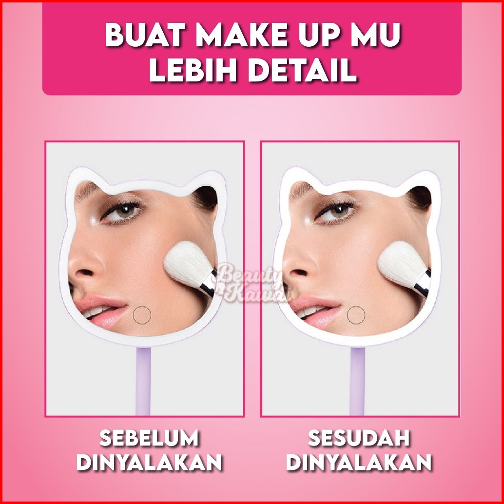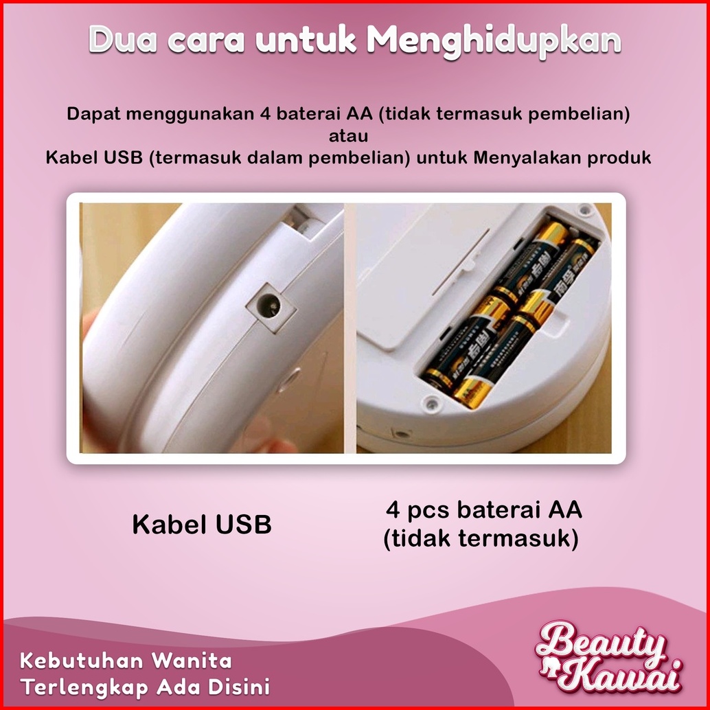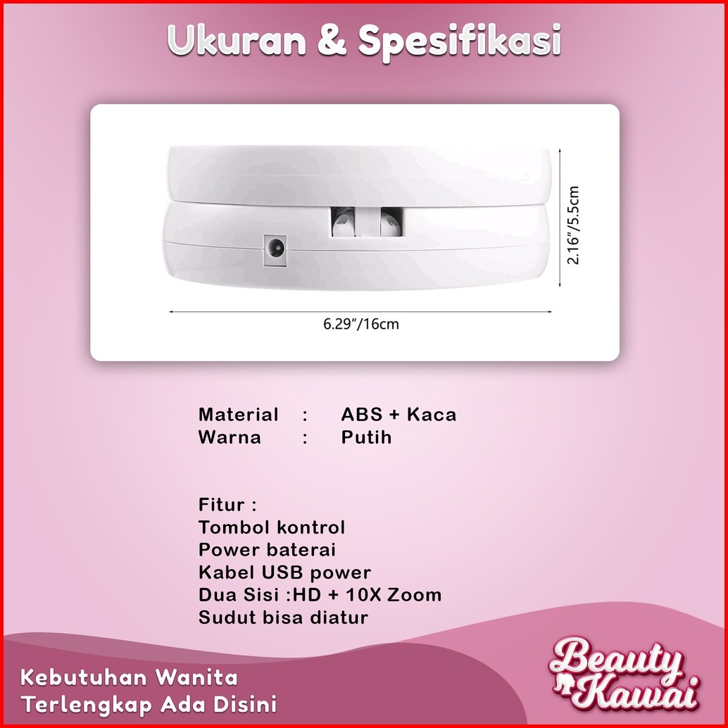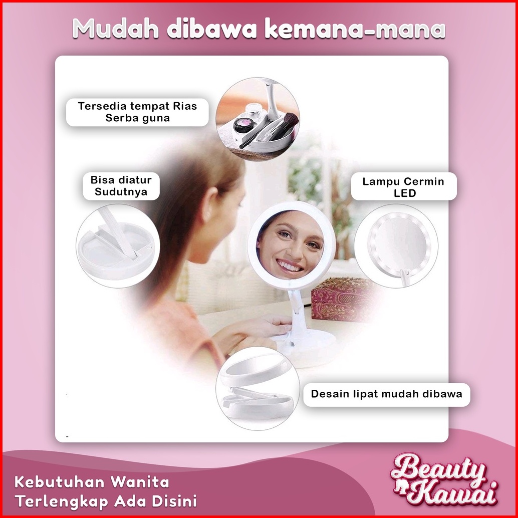 Cermin Bulat Lipat Kaca Rias Led 2 Sisi Ganda Putar Usb Cas