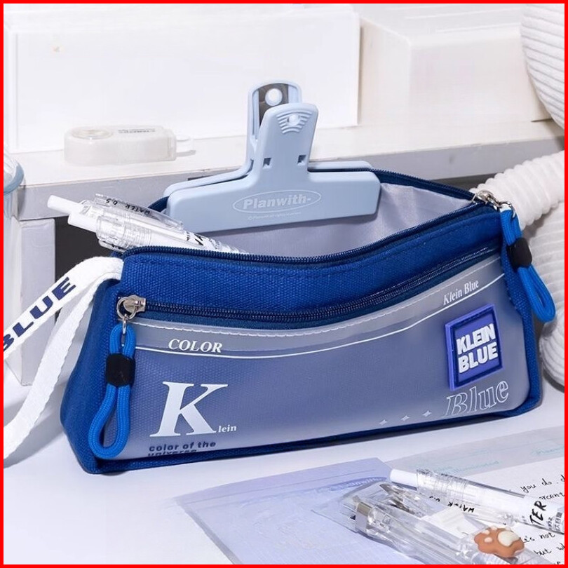 Kotak Pensil Lucu Biru Tempat Pensil Aesthetic Tas Pensil Cowok Keren Anti Ribet Pencil Case Material Kain Kanvas Alat S