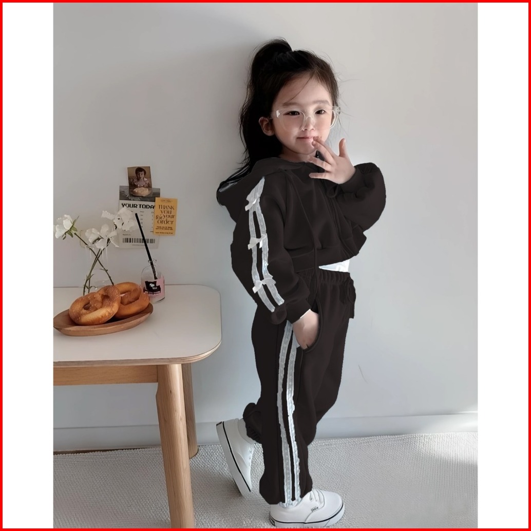 Setelan Sweater Hoodie Renda Anak Perempuan 1-8 Tahun Pita