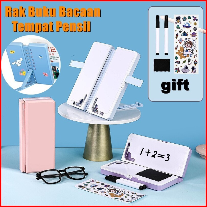 Tempat Pensil 2in1 Multifungsi Pencil Case Book Holder Kotak Pensil Lipat Dengan Tatakan Buku Dan Papan Tulis Praktis An