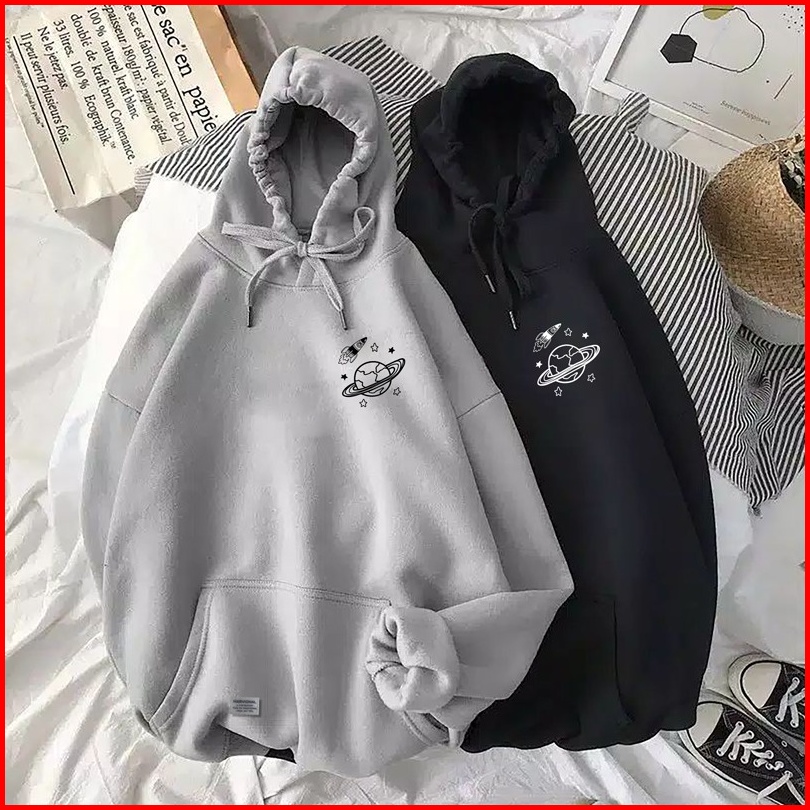 Parisdivarious Sweater Hoodie Jumper Distro Premium Planet Rocket Fleece Tebal S - Xxl Pria Wanita