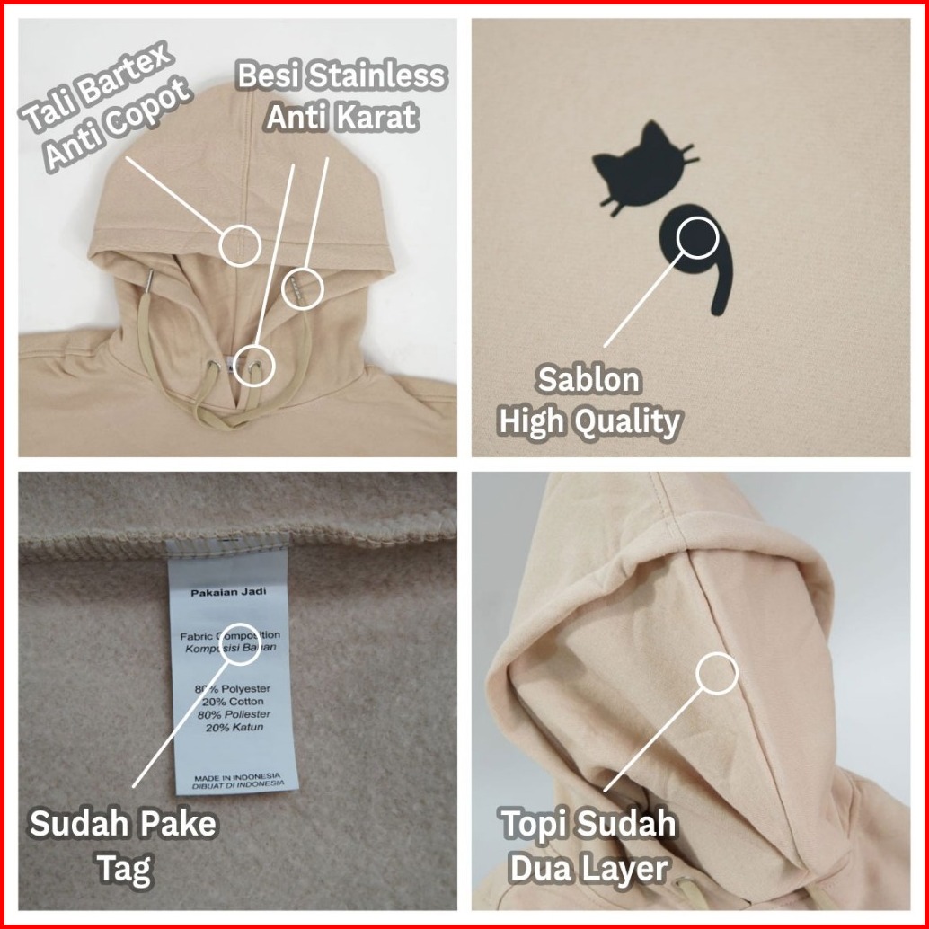 Parisdivarious Sweater Hoodie Jemper Comma Cat Bahan Fleece Tebal Size S - Xxl Pria Wanita