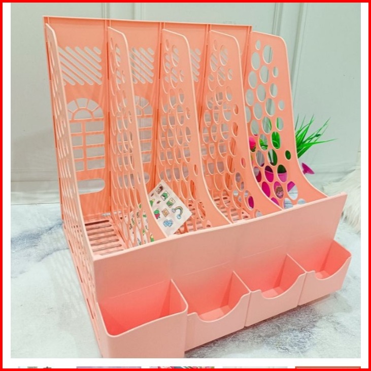 Rak Organizer Buku Penyimpanan 8 Sekat Multifungsi Rak Meja Rack Book File Dengan Tempat Pulpen Box Desktop