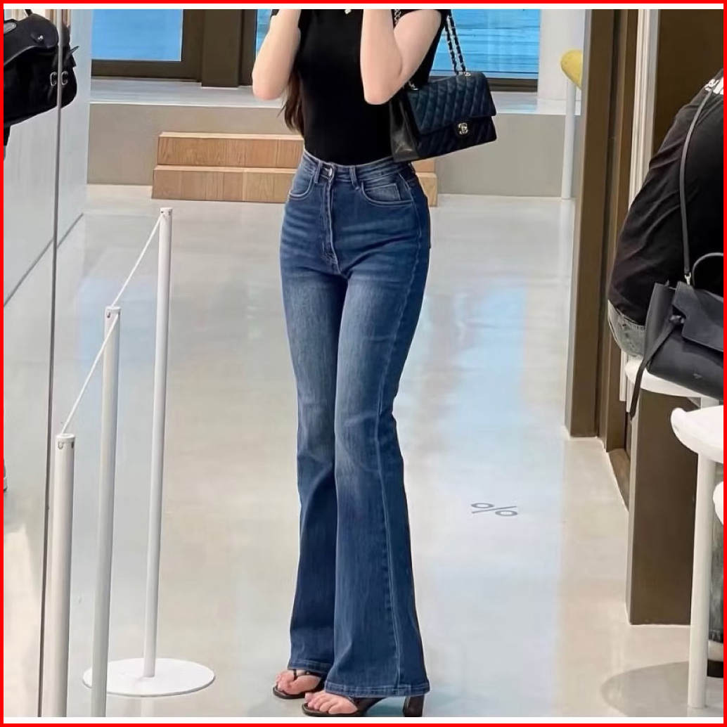 Luxe S - Celana Highwaist Cutbray Jeans Streach Wisker Hangout Wanita Terbaru Koreanstyle