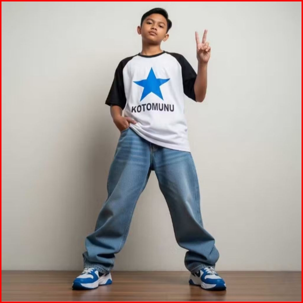 Celana Jeans Anak Laki-laki Usia 8 - 13 Tahun Celana Baggy Jeans Anak Laki-laki Retro Wisker Gombrong Skena Terbaru