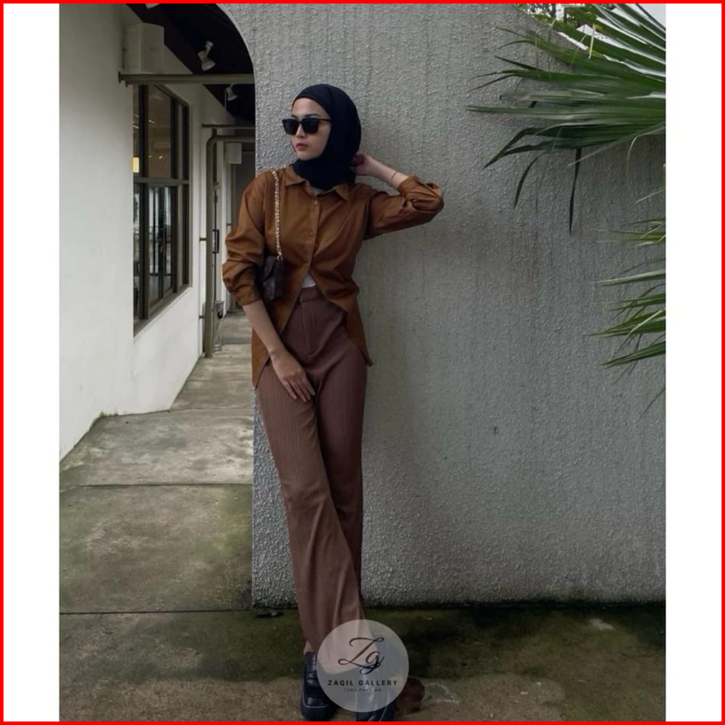 Celana Cutbray Knit Premium Flare Pants Celana Wanita Highwaist Basic Korean Looks