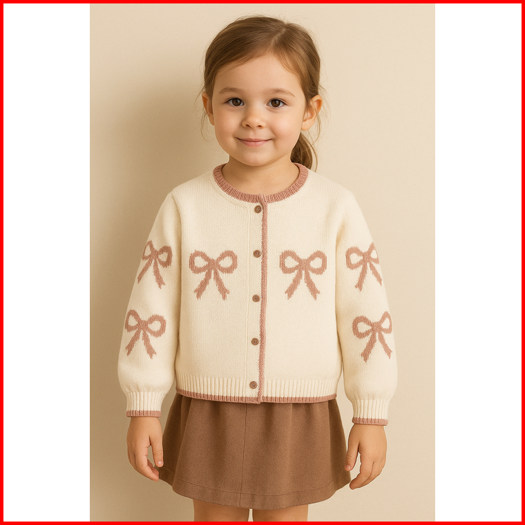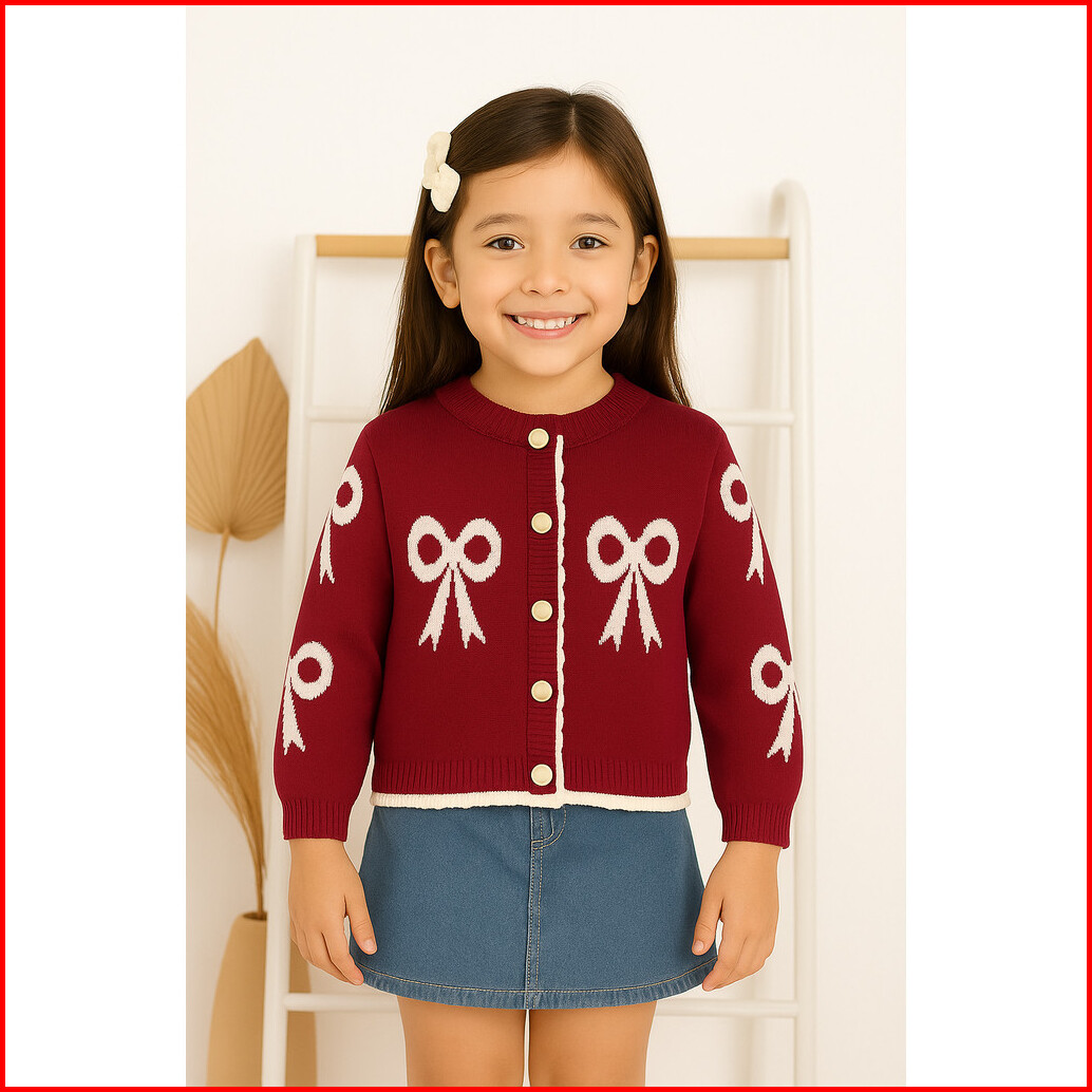 Cardigan Rajut Anak Perempuan Bahan Rajut Pollycotton Motif Pita Cantik Shinly Cardy Umur 1-6 Tahun