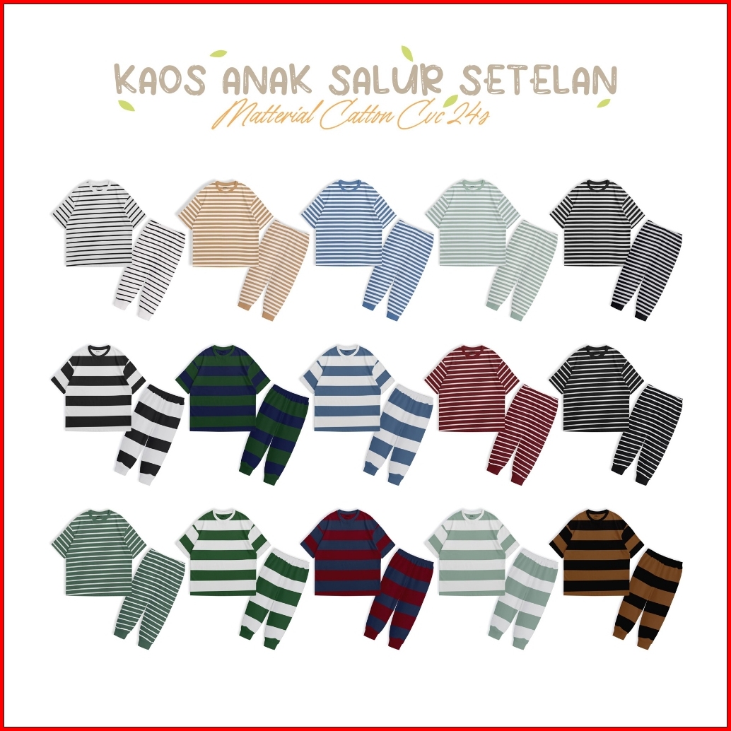 Piyama Anak Usia 1-10 Tahun Tangan Pendek Laki Laki Perempuan Motif Garis Salur Belang Demoonkids