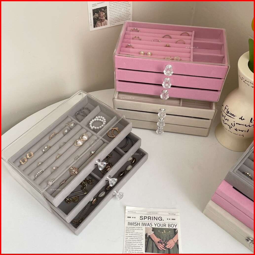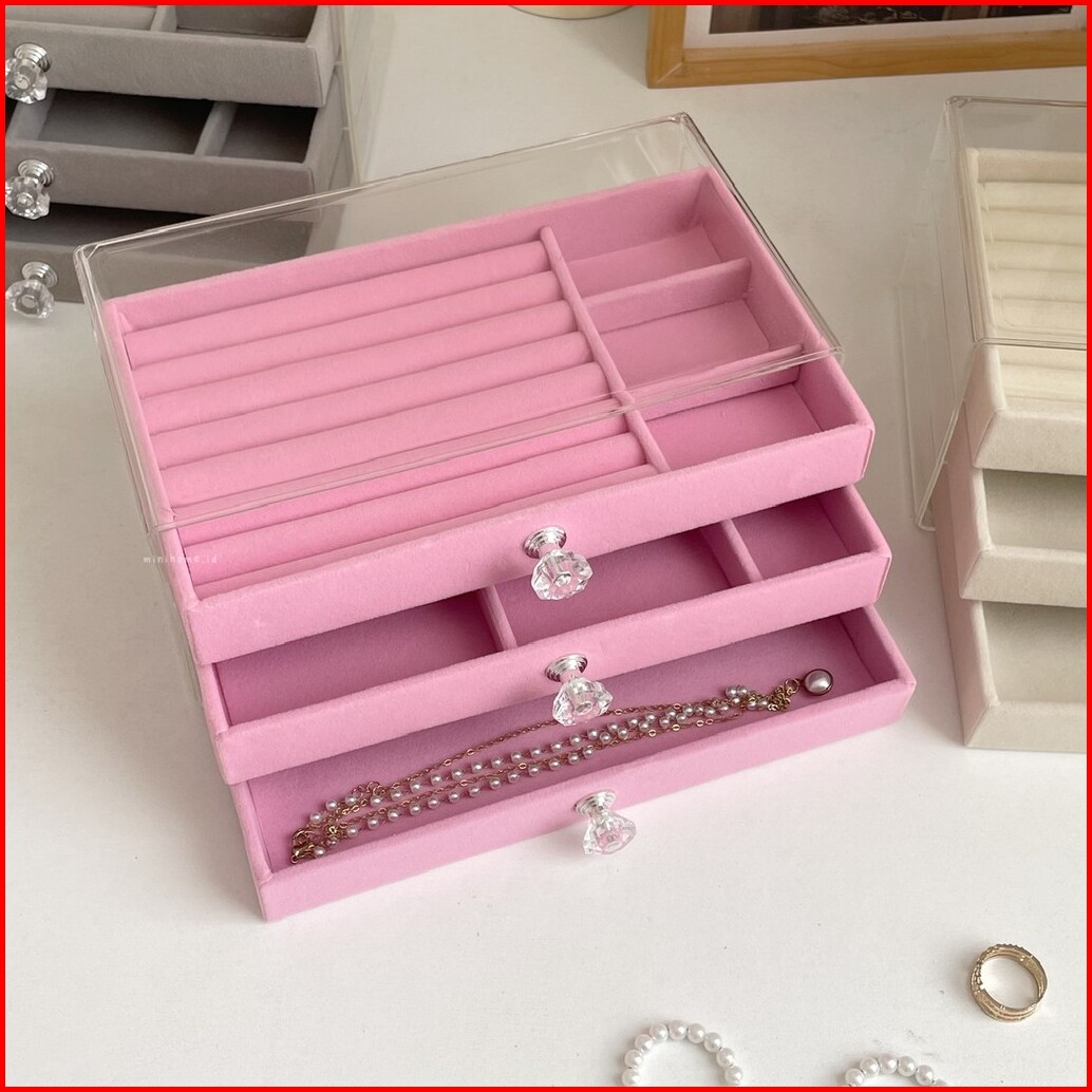 Minihome Chiyo Tempat Penyimpanan Aksesoris Bahan Bludru Dan Akrilik Jewelry Box Storage