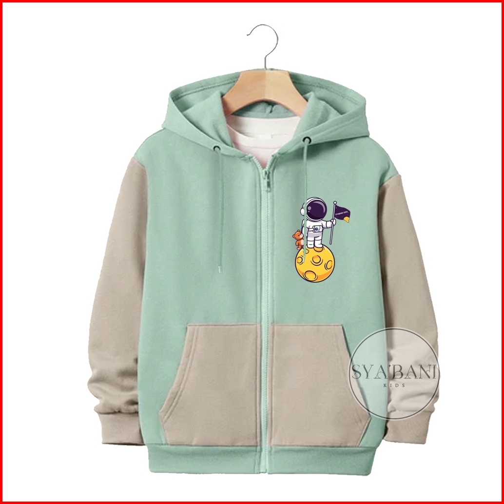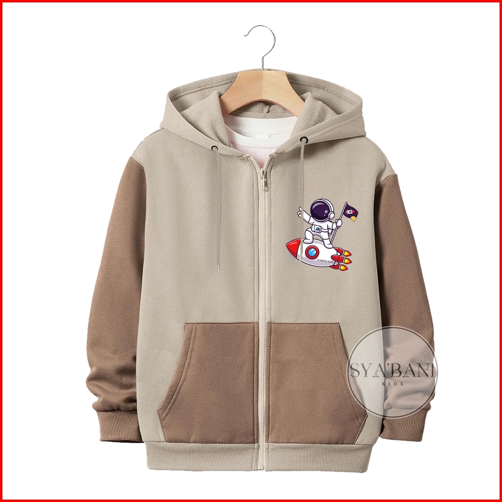 Jaket Zipper Kombinasi Anak Laki-laki Perempuan Sablon Astronot Usia 2-12 Tahun Kombinasi Fleece
