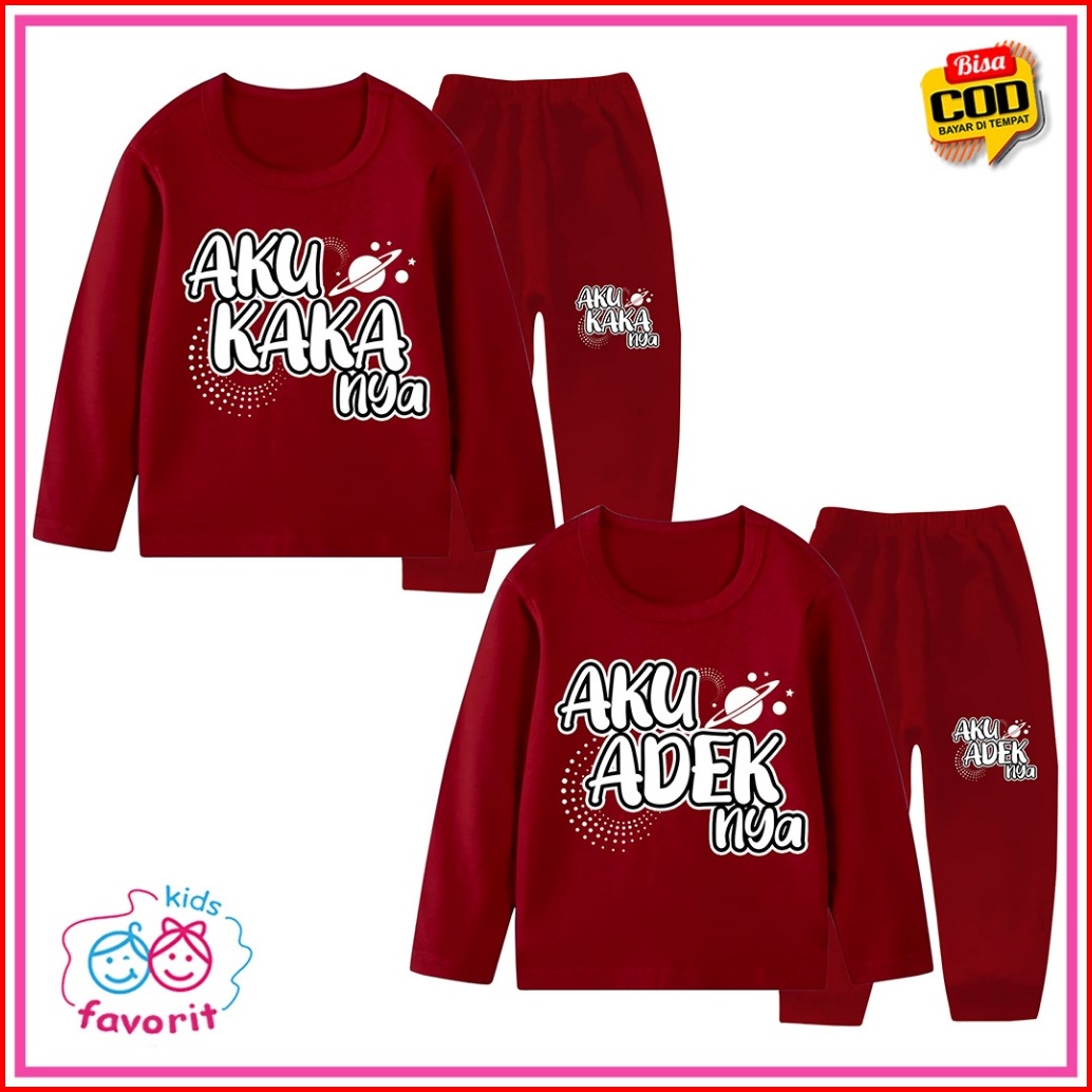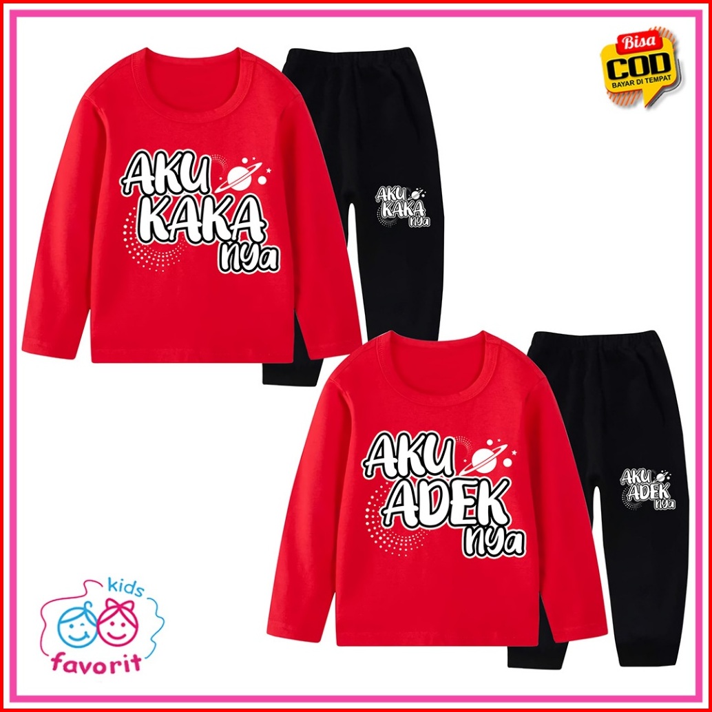 Piyama Setelan Anak Perempuan Lengan Panjang Celana Panjang Motif Kata Kata Aku Adeknya Aku Kakaknya