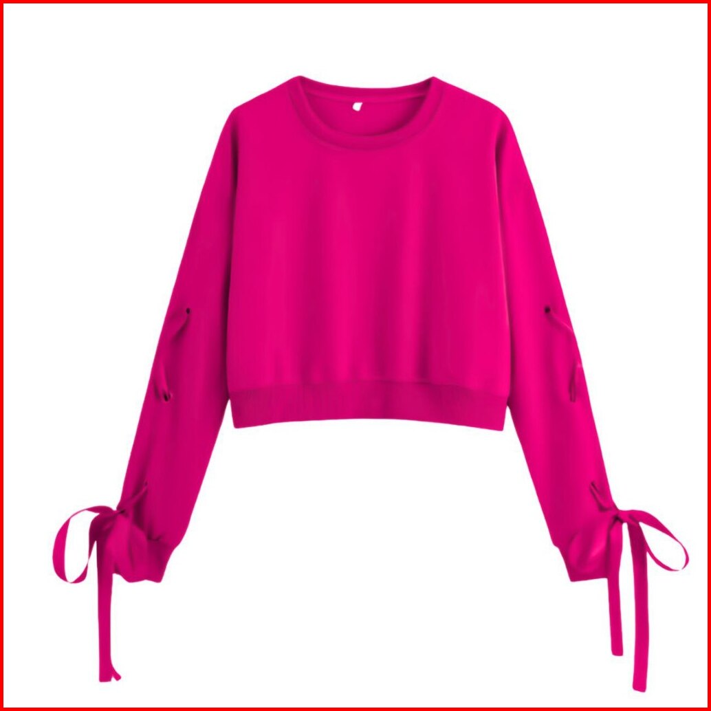 Baju Sweater Crop Top Tali Pita Atasan Lengan Panjang Trend Kekinian Anak Perempuan Usia 2-13 Tahun