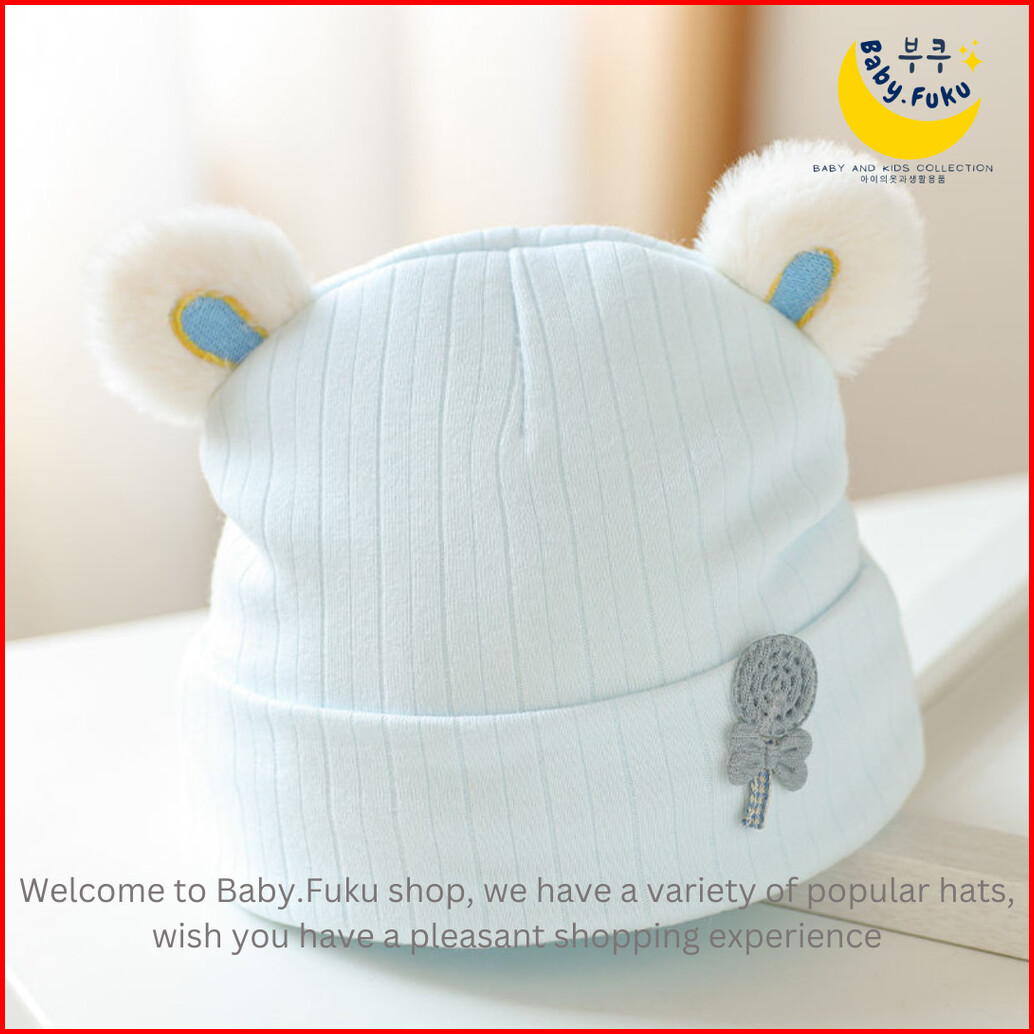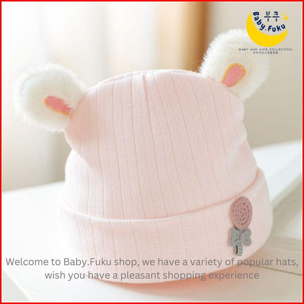 Baby.fuku Topi Kupluk Bayi Bahan Rajut Motif Kucing Nekko Kuping Kucing Lollipop