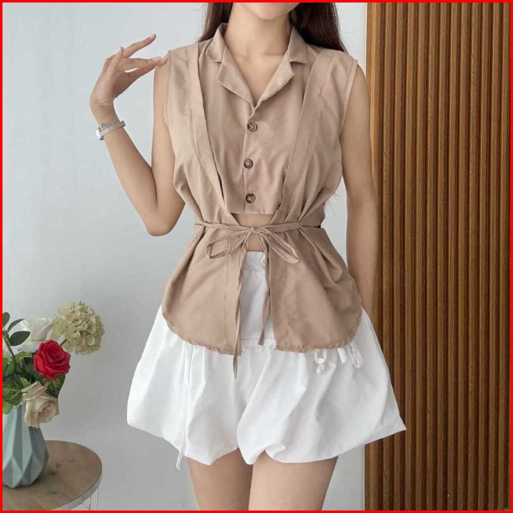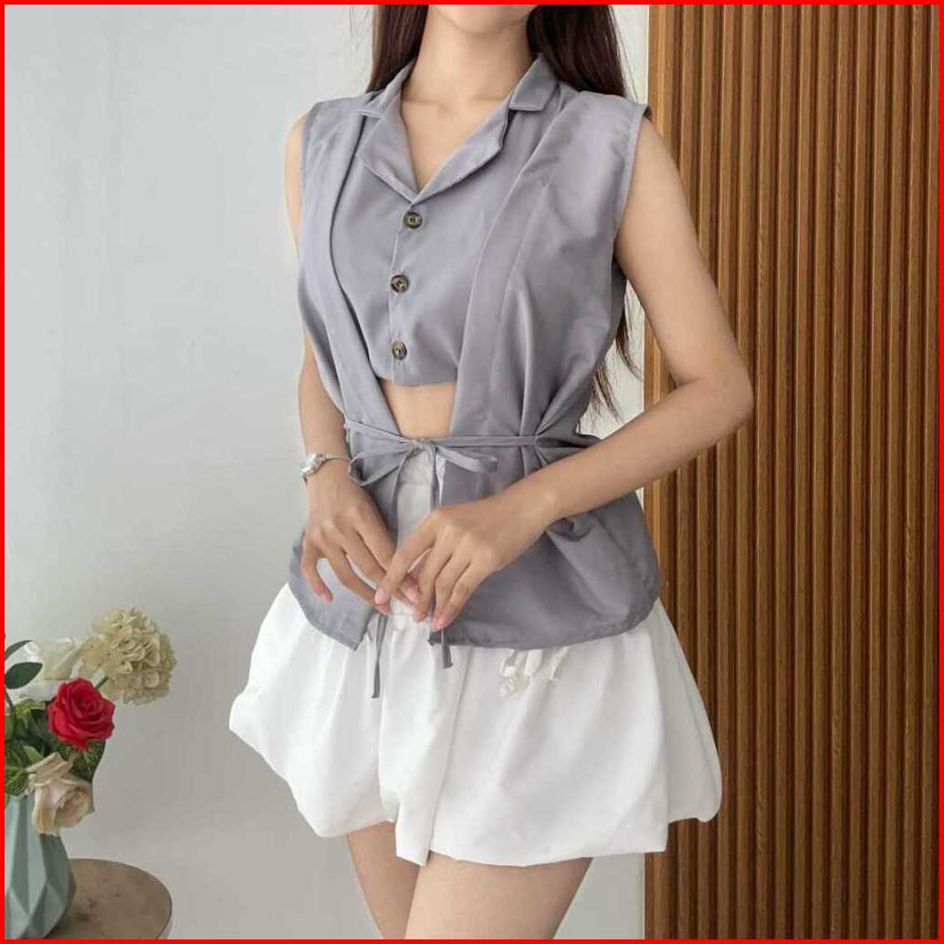 Rx Fashion - Mecca Vest Atasan Rompi Luaran Wanita Lengan Pendek Korean Style -pn