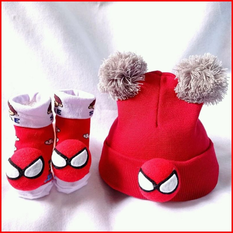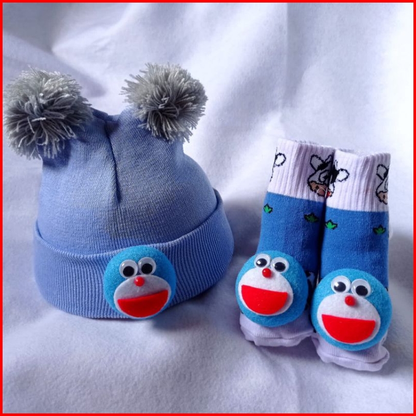 Set Kupluk Dan Kaoskaki Bayi 0-3th Topi Kupluk Pom Pom Handmade