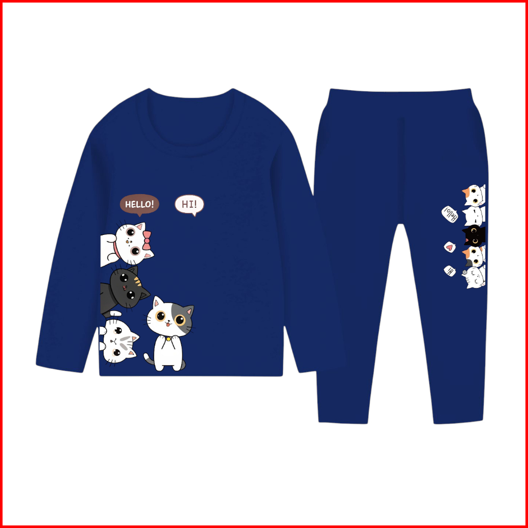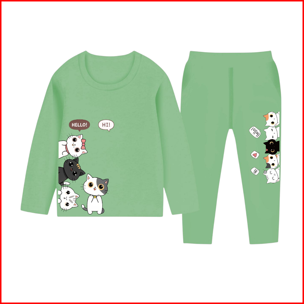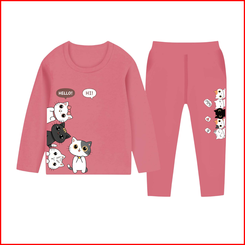 Victory Kids Setelan Lengan Panjang Cute Cat Piyama Anak Perempuan Usia 1-10 Tahun