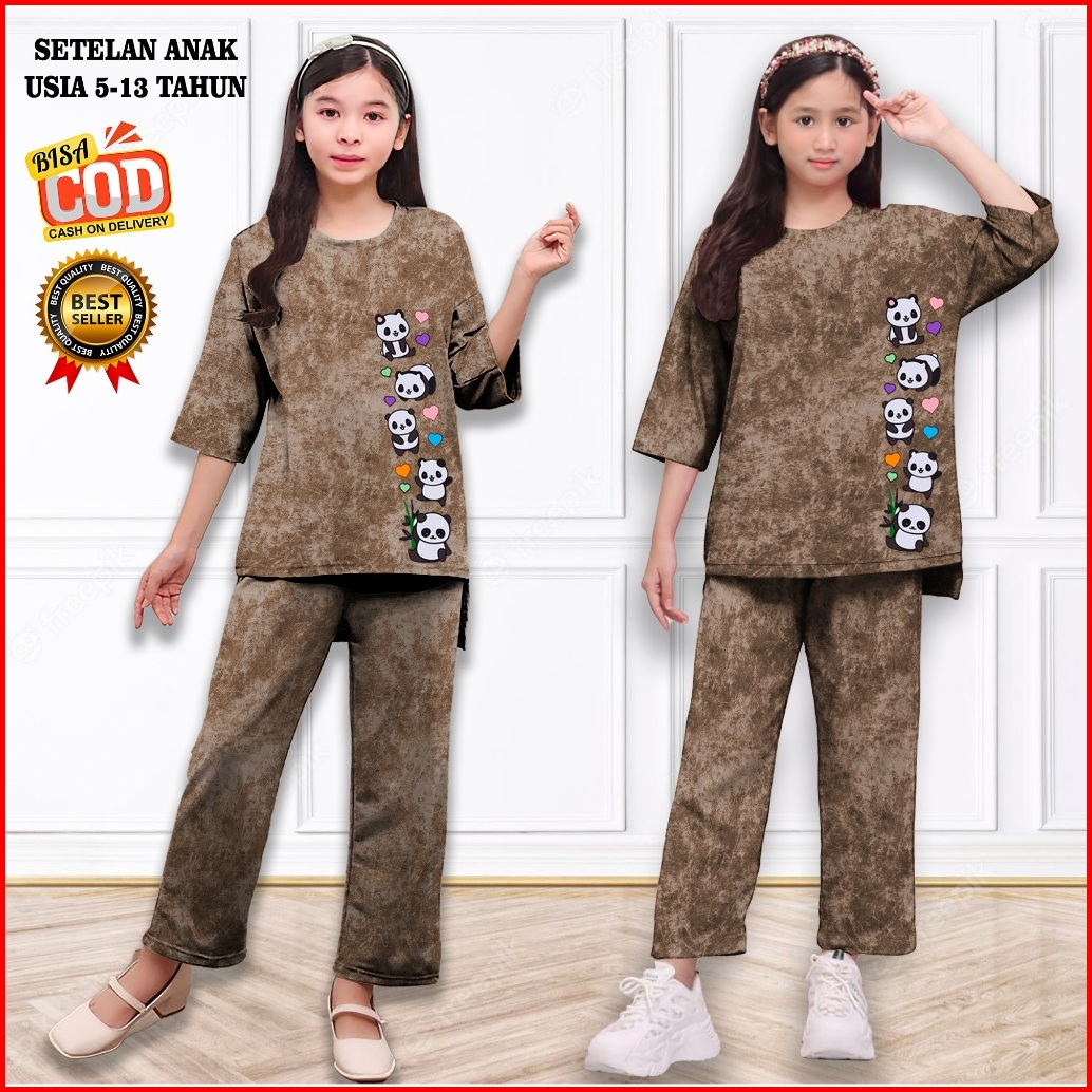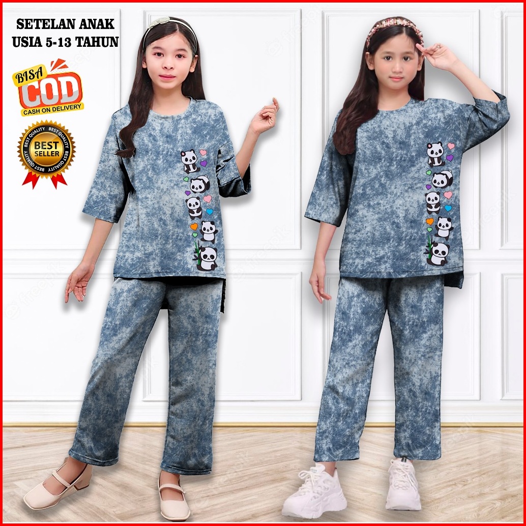 Setelan Anak Perempuan Panda Love Usia 5-13 Tahun Setelan Anak Hoshi