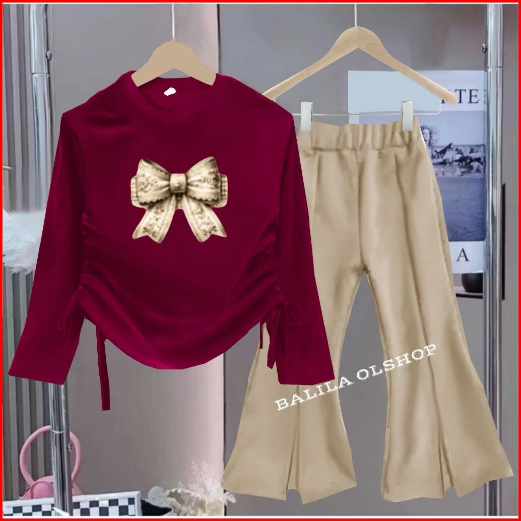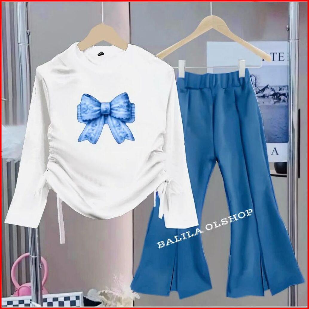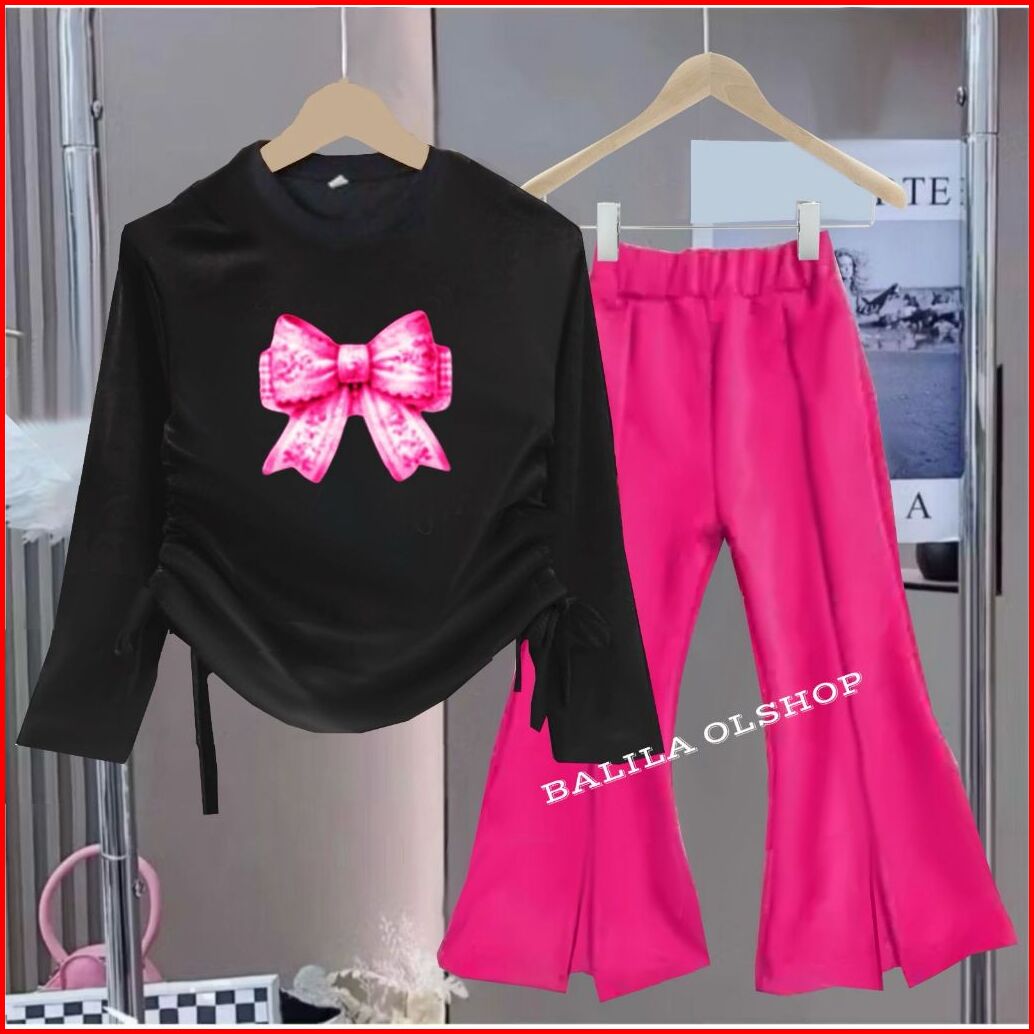 Setelan Anak Perempuan Kekinian Model Cutbray Dan Kaos Panjang Pita Model Serut 1-12 Tahun