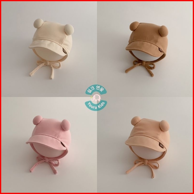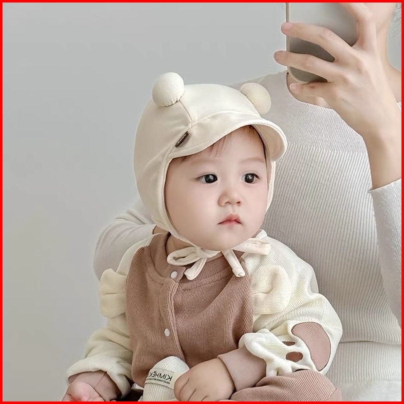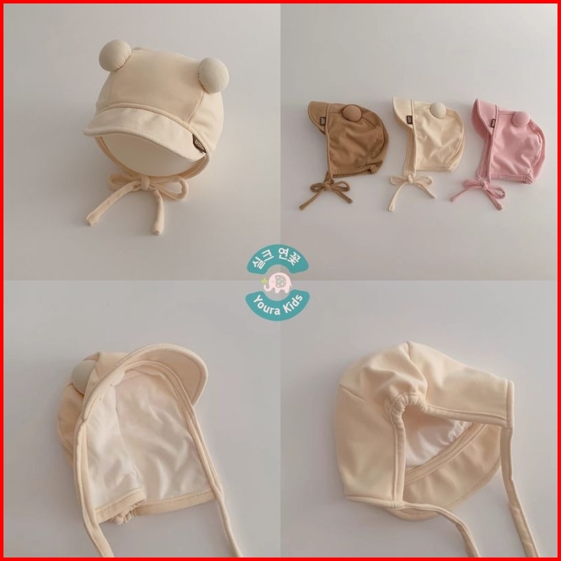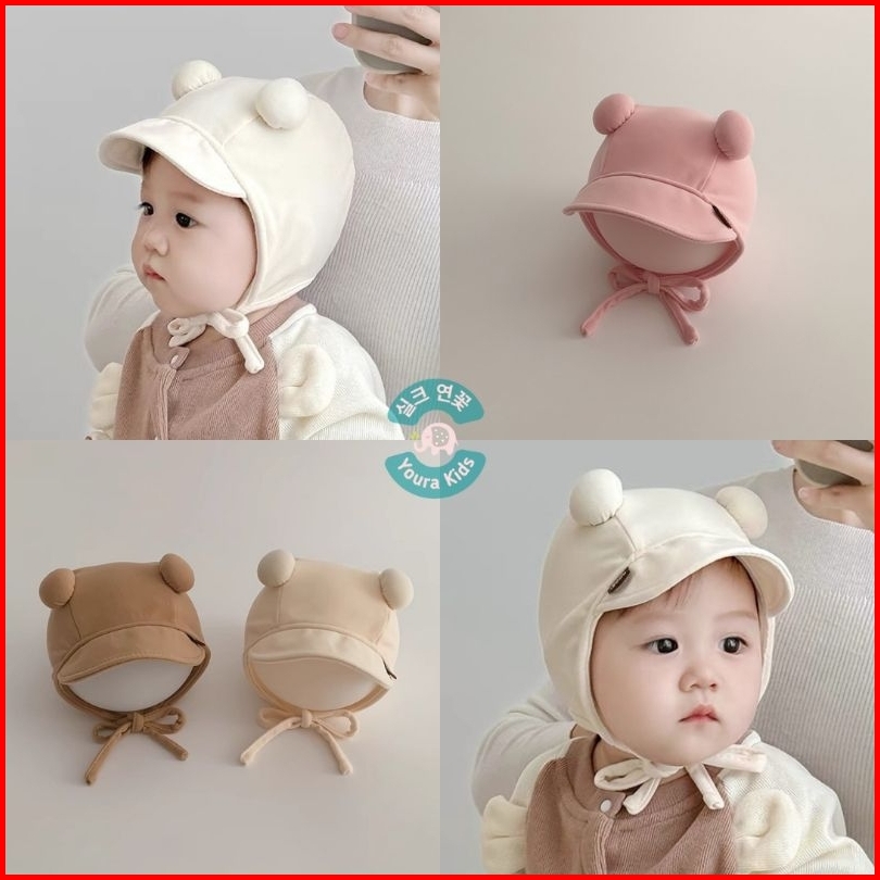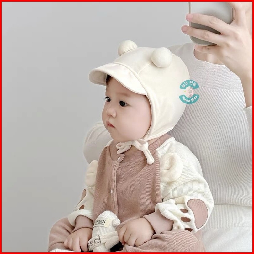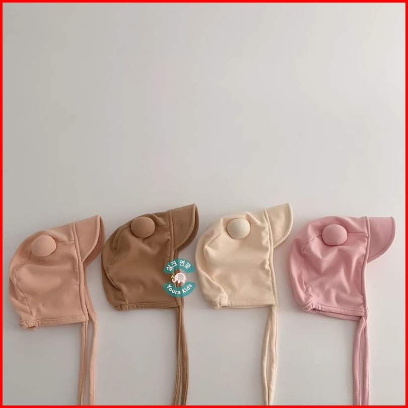0-18 Bln Topi Bonnet Anak Bayi Batita-face Covered Pom2 Ball Dx- -new Korean Model