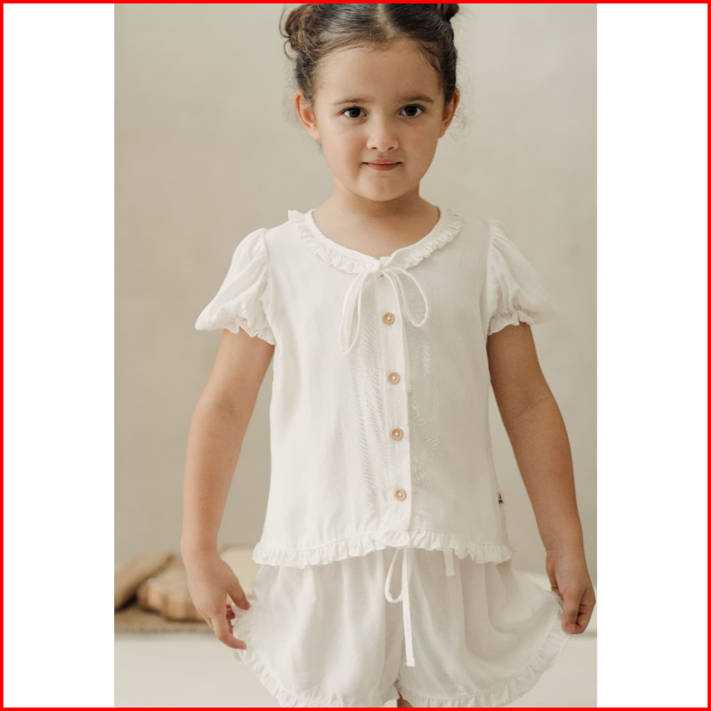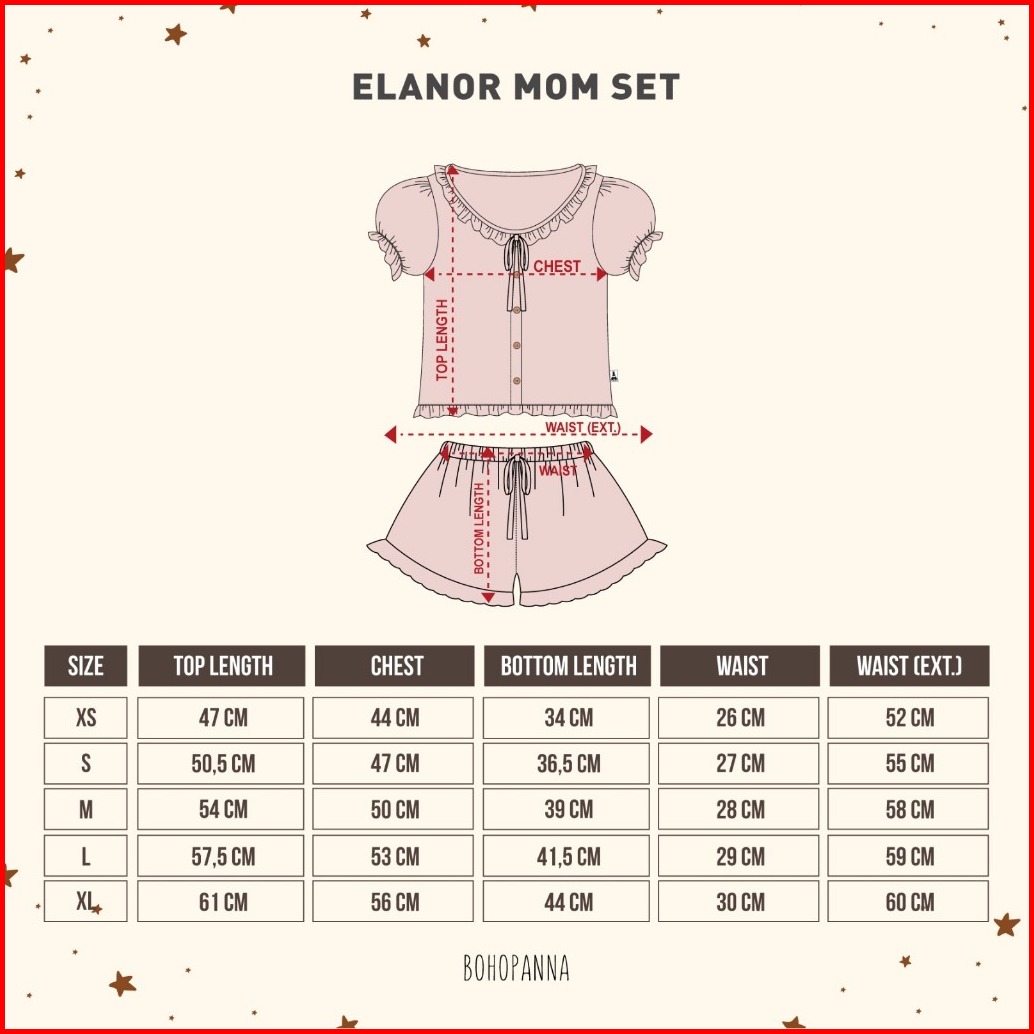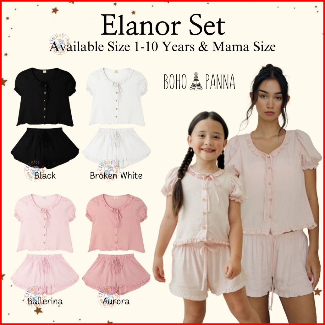 Bohopanna 1-10 Tahun Mama Size Elanor Set Setelan Piyama Puffy Pendek Ruffle Ribbon Couple Anak Perempuan Cbks