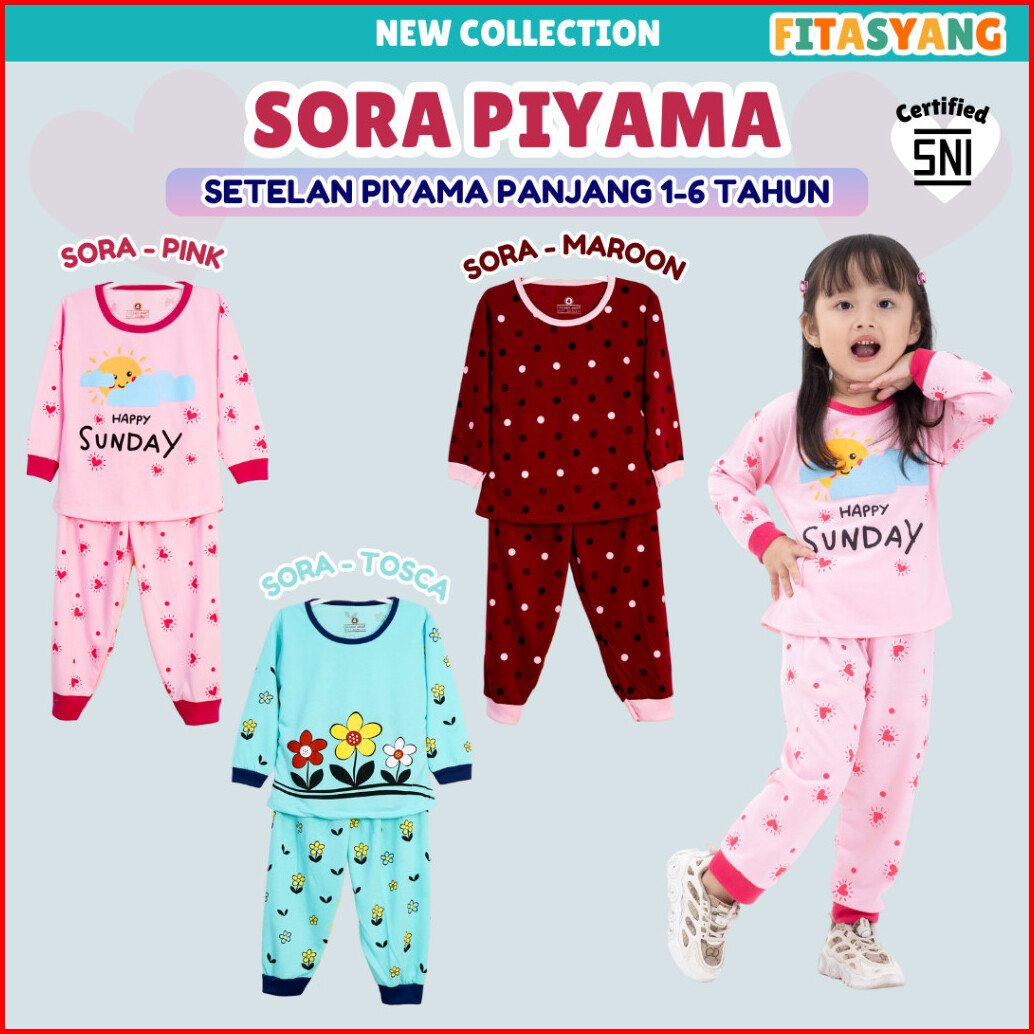 Fitasyang Diskon 12.12 Setelan Panjang Piyama Baju Tidur Anak 2-7 Tahun - Sora Piyama